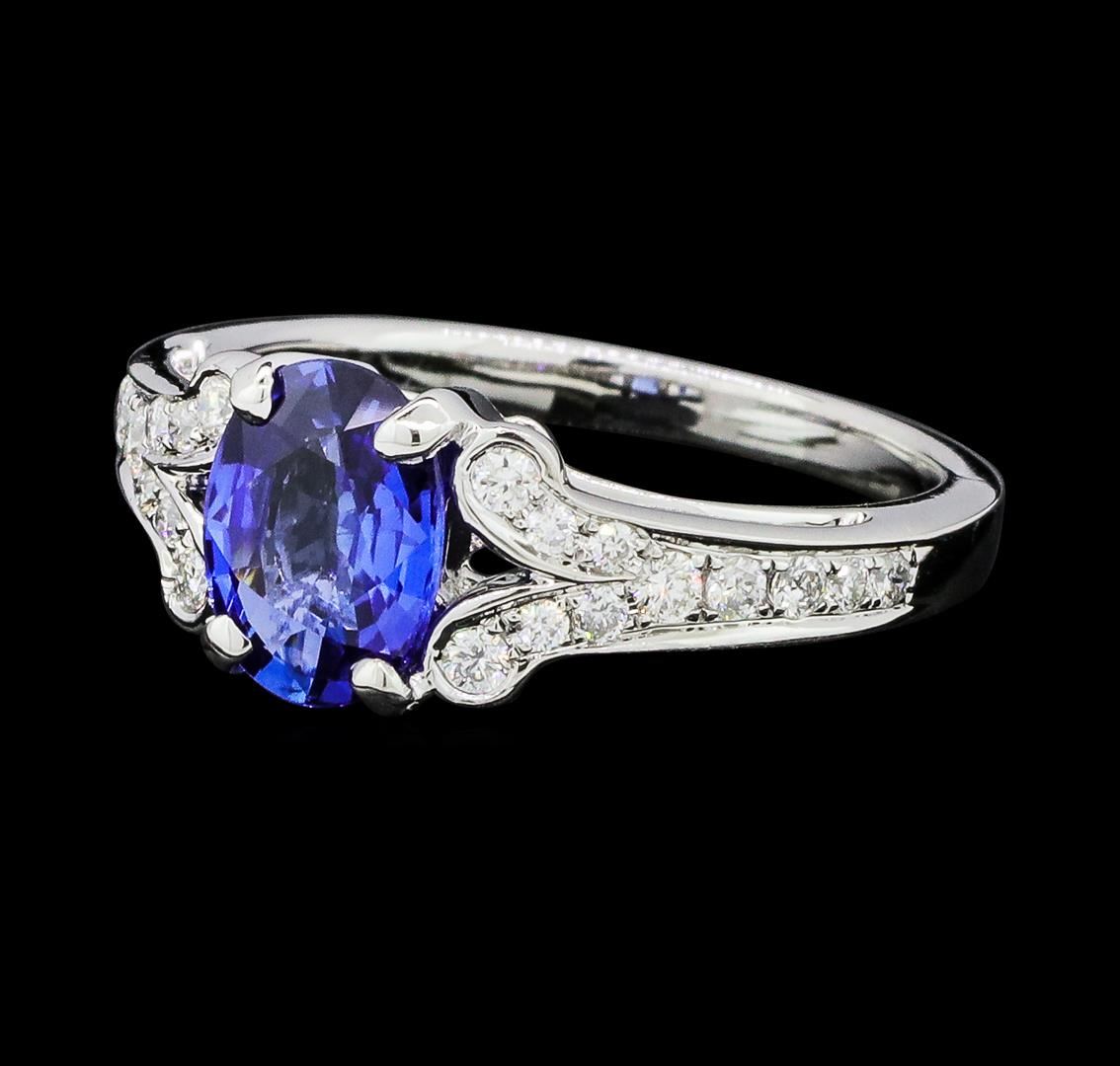 One lady's ring featuring: 18KT white gold weighing 4.1 grams containing one sapphire weighing 1.32ct and diamonds weighing 0.35ctw.