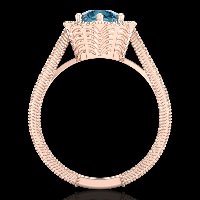 37958 - REF-227N3A ---- 1.33 CTW Fancy Intense Blue Diamond Solitaire Art Deco Ring 18K Rose Gold ---- Luxury Designer Brand Ring Appraised at $15,000 Certificate Number US37958 18k Rose gold, Ring Size is 7, Ring measuring approx. Uniform, weighing in total approx. 6.3 grams. Made in the USA and is stamped 18k, Main stone 1 carat total weight containing 1 pieces of Intense Fancy Blue color with SI quality Round shape cut Diamond , Stone #2 0.33 carat total weight containing 26 pieces of H-I color with VS/SI quality Round shape cut Diamond