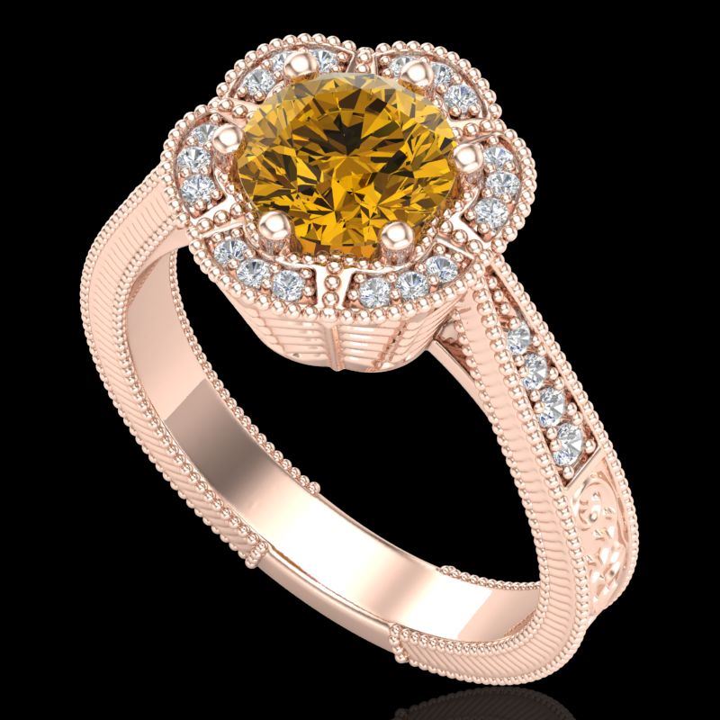 REF-227N3Y -37960 ---- 1.33 CTW Intense Fancy Yellow Diamond Engagement Art Deco Ring 18K Rose Gold ---- Luxury Designer Brand Ring Appraised at $13,750 Certificate Number US37960 18k Rose gold, Ring Size is 7, Ring measuring approx. Uniform, weighing in total approx. 6.3 grams. Made in the USA and is stamped 18k, Main stone 1 carat total weight containing 1 pieces of Intense Fancy Yellow color with SI quality Round shape cut Diamond , Stone #2 0.33 carat total weight containing 26 pieces of H-I color with VS/SI quality Round shape cut Diamond