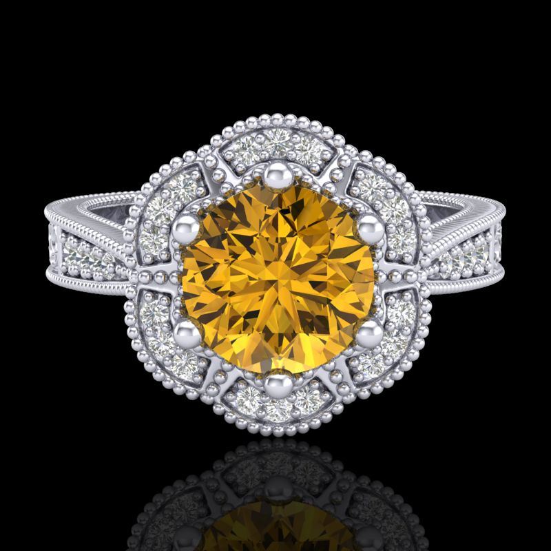 REF-227W3F -37959 ---- 1.33 CTW Intense Fancy Yellow Diamond Engagement Art Deco Ring 18K White Gold ---- Luxury Designer Brand Ring Appraised at $13,750 Certificate Number US37959 18k White gold, Ring Size is 7, Ring measuring approx. Uniform, weighing in total approx. 6.3 grams. Made in the USA and is stamped 18k, Main stone 1 carat total weight containing 1 pieces of Intense Fancy Yellow color with SI quality Round shape cut Diamond , Stone #2 0.33 carat total weight containing 26 pieces of H-I color with VS/SI quality Round shape cut Diamond
