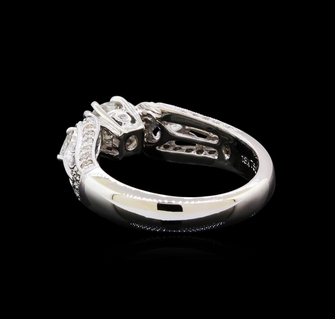 One electronically tested 18KT white gold lady's cast vintage wedding ring with a bright polish with milgrain detailing finish. The featured lady's ring has a shank measuring 3.90 millimeters in width. Identified with markings of "18K". Condition is new, good workmanship. Containing: One prong set round brilliant cut diamond, measuring 5.35 - 5.30 x 3.62mm (depth est.) , 8.00.%. GTCF approximate weight of 0.68ct. Graded in the setting. Clarity: I-1. Color: Good Forty-Eight prong set round brilliant cut diamonds, measuring 1.35 - 1.20 x 0.77mm (depth est.) approximate total weight of 48 Stones = 0.37ct. Graded in the setting. Clarity: VS-2 to SI-1. Color: G - Good Two prong set triangle cut diamonds, measuring 3.60 x 3.50 x 1.93mm (depth est.) approximate total weight of 2 Stones = 0.28ct. Graded in the setting. Clarity: SI-1 to SI-2. Color: G - Very Good. Total Weight of Diamonds 1.33ct. Total Weight of Wedding Ring 6.40gm. GAS Appraised at $7,165.00.