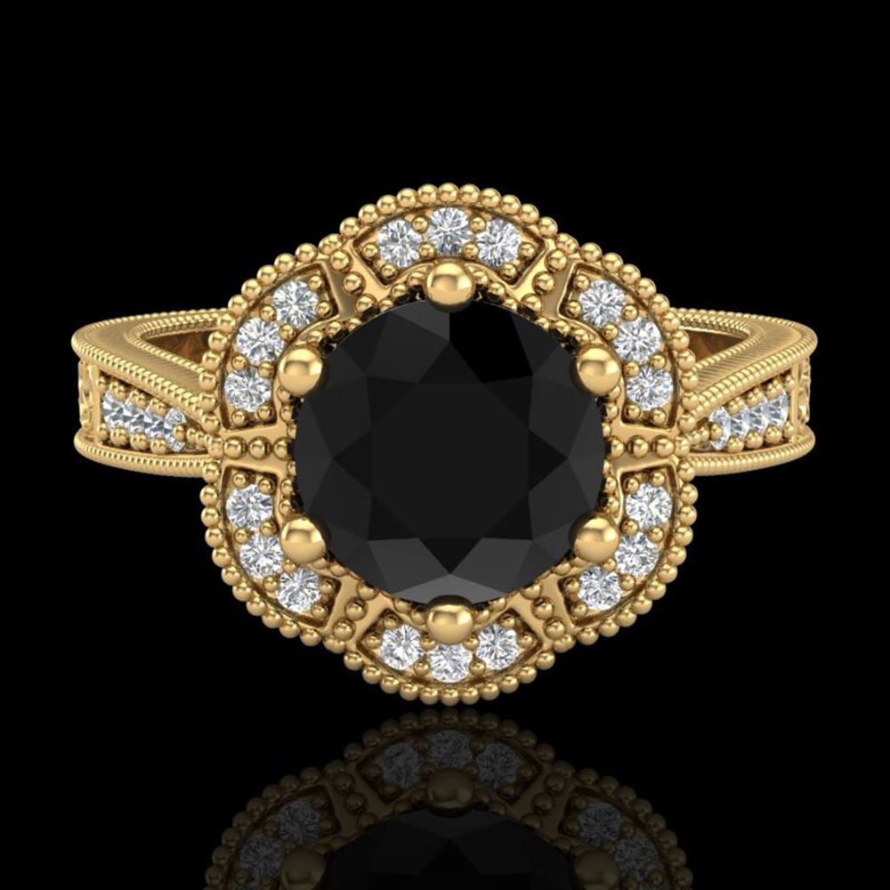 REF-89W3H - SKU: 37956 ---- 1.33 ctw Fancy Black Diamond Engagment Art Deco Ring 18k Yellow Gold