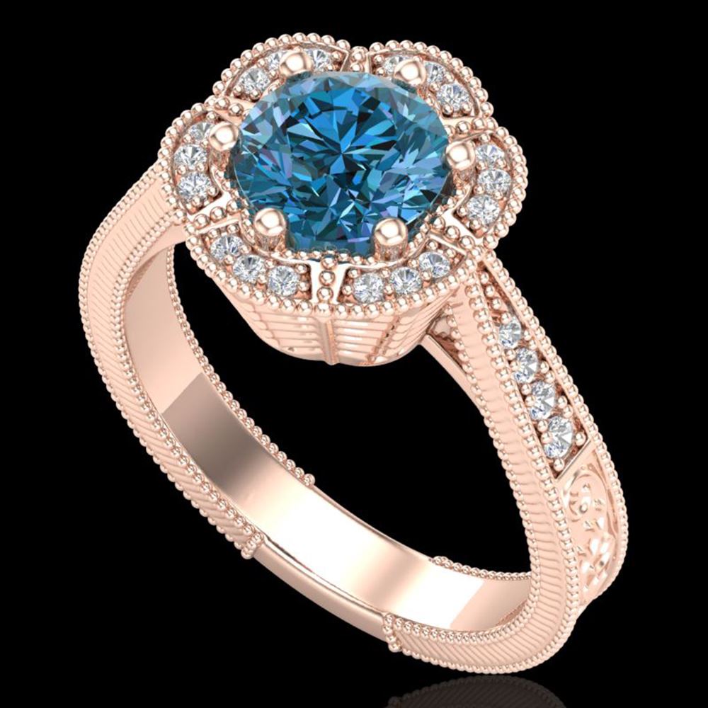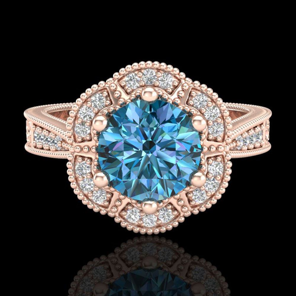 REF-227R3K - SKU: 37958 ---- 1.33 ctw Fancy Intense Blue Diamond Art Deco Ring 18k Rose Gold