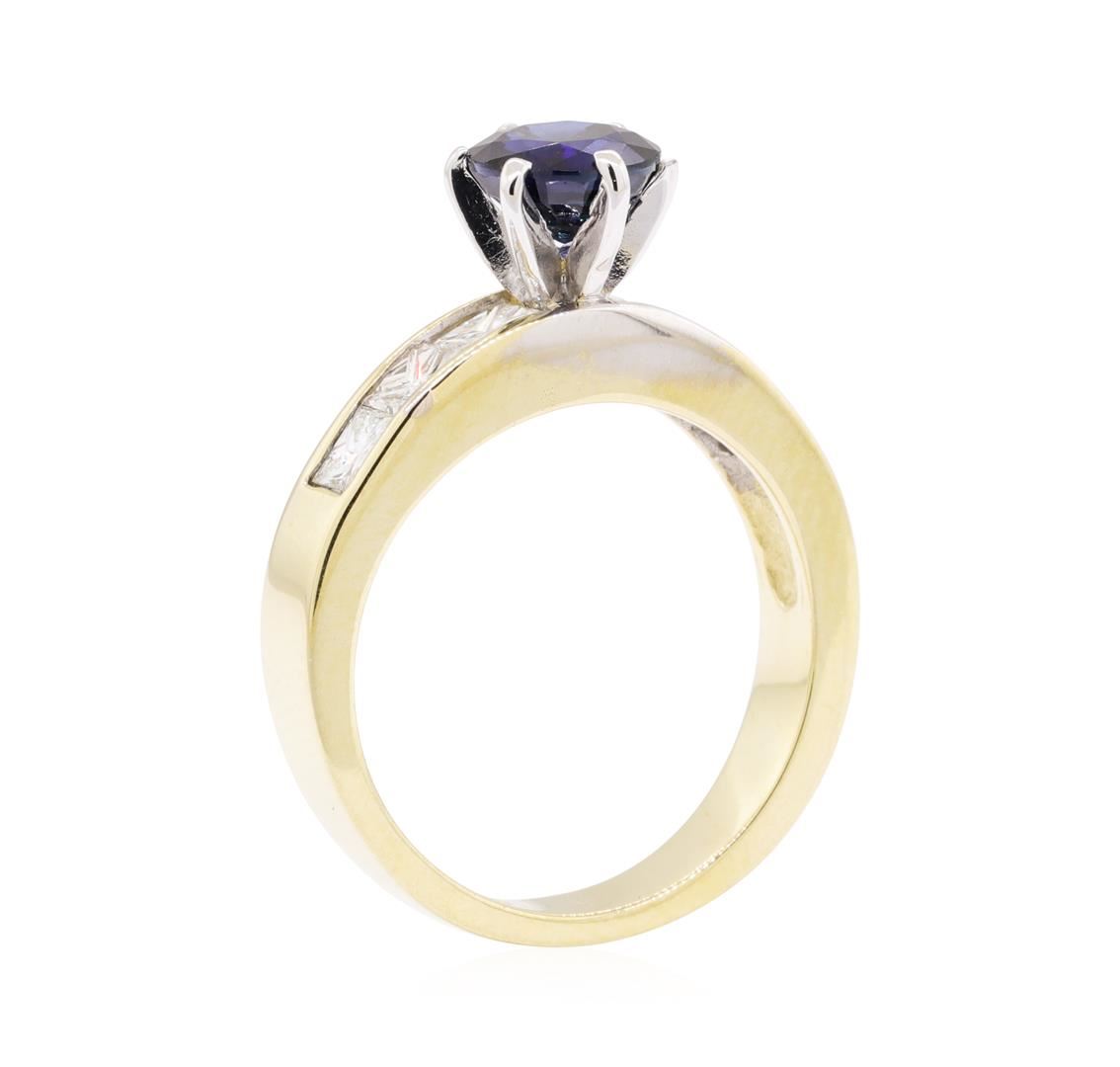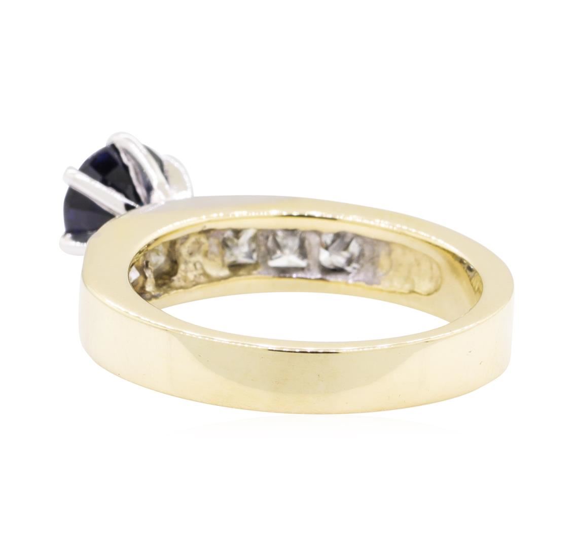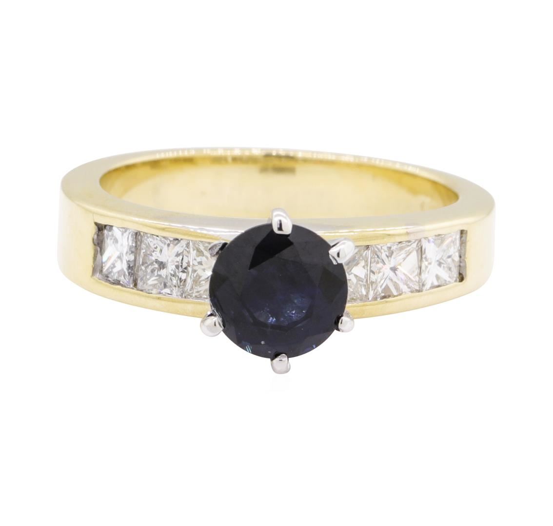 One lady's ring featuring: 14KT yellow gold weighing 5.7 grams containing one blue sapphire weighing 1.33ct and diamonds weighing 0.80ctw.