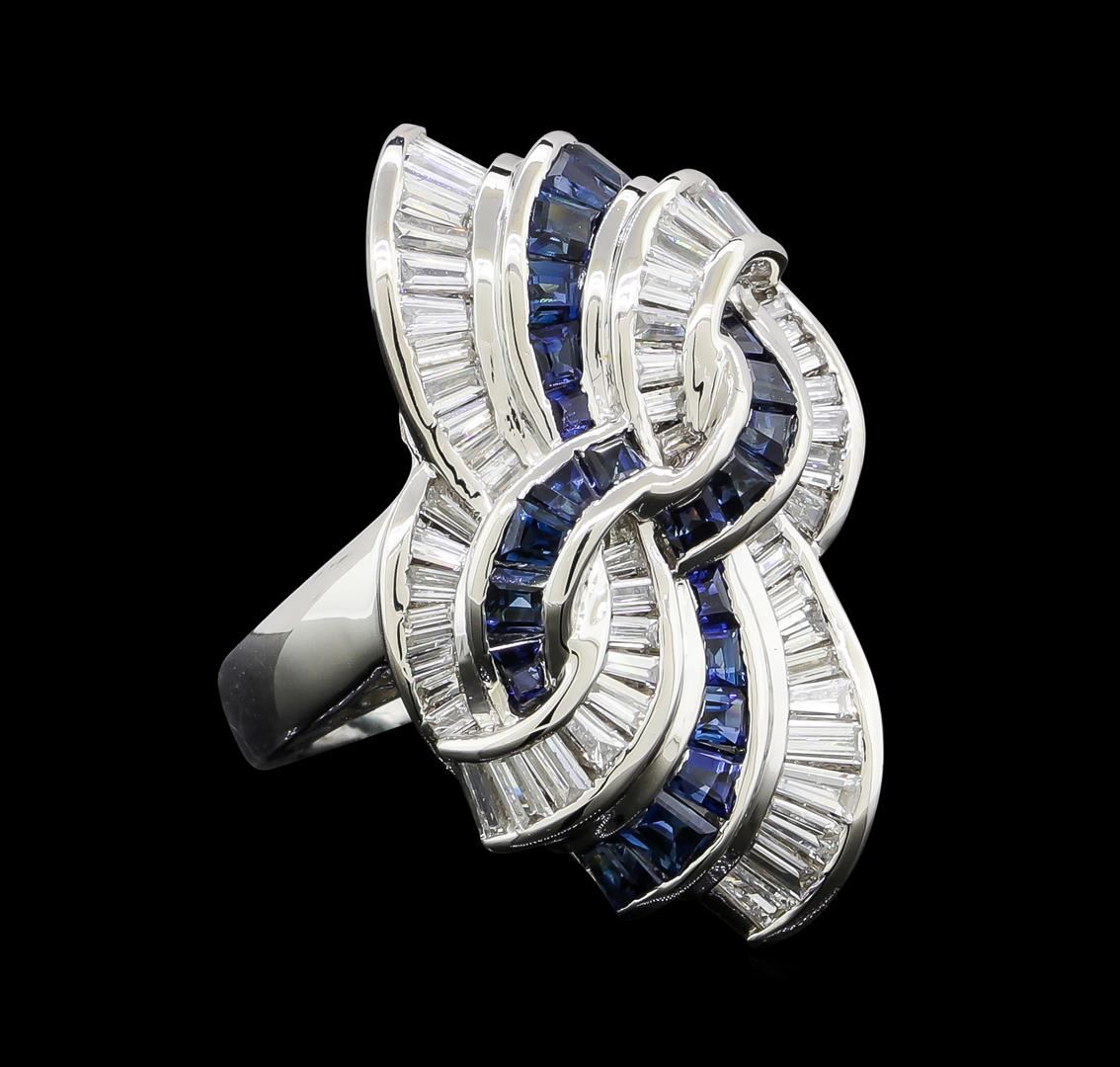 One ring featuring: Platinum containing Sapphire with a total weight of 1.33ct and Diamonds with a total weight of 1.83ct. Total Weight of Ring: 15.3 grams.
