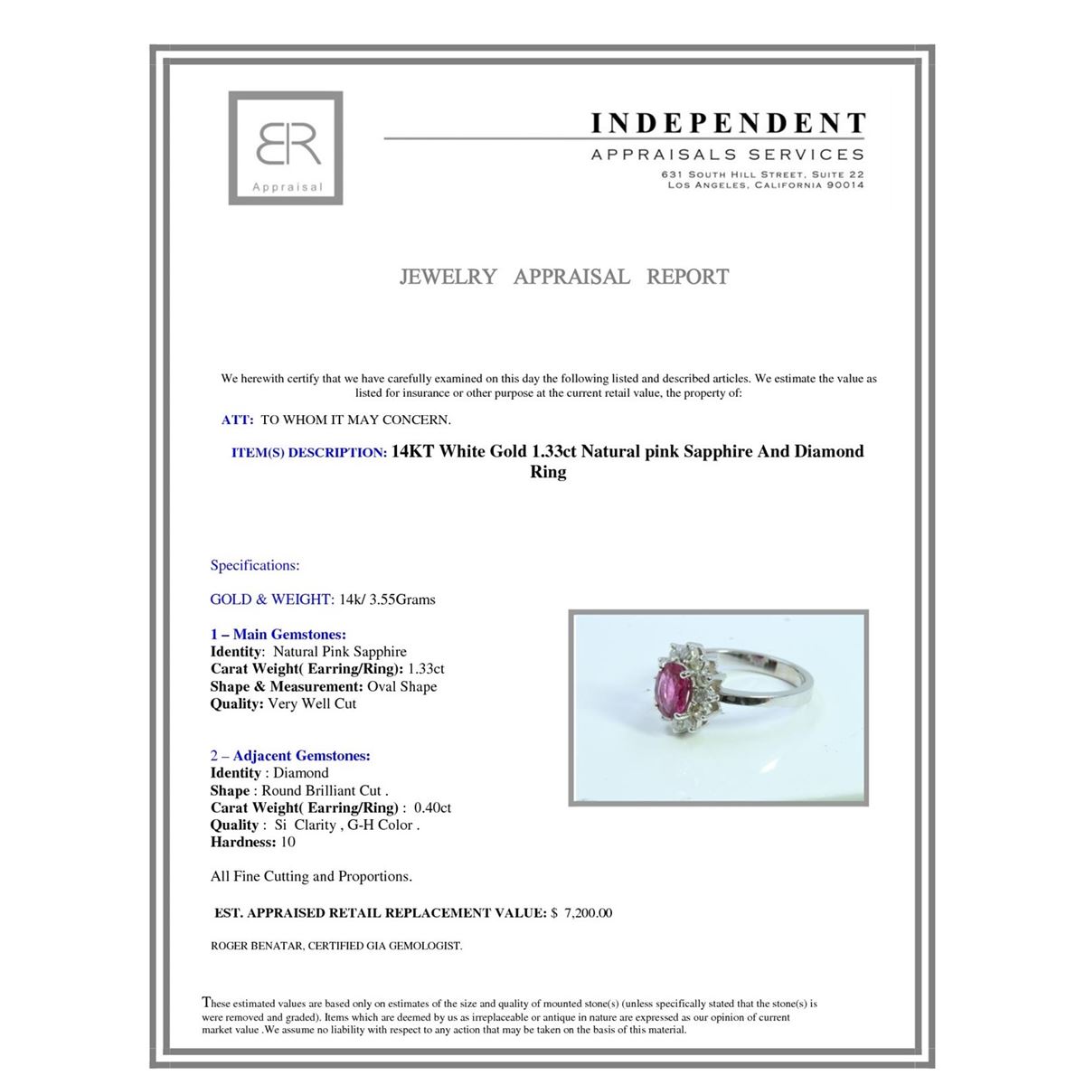 14K WHITE GOLD NATURAL CEYLON PINK SAPPHIRE RING: 3.55GRAM / DIAMOND :0.40CT/CEYLON PINK SAPPHIRE:1.33CT/#GVR1240