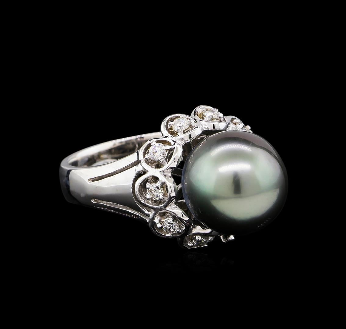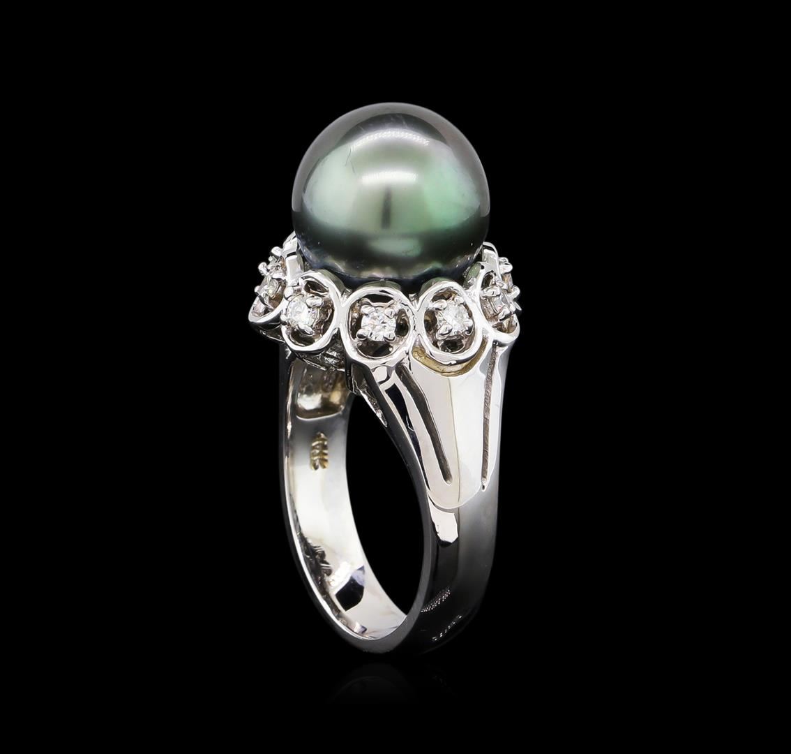 One ring featuring: 14KT white gold weighing 7.35 grams containing one pearl and side diamonds with a total weight of 0.33ct.