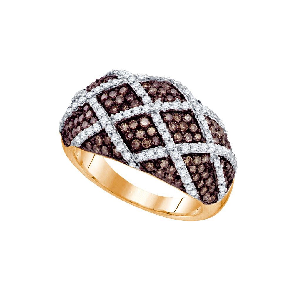 REF-99Y9V ---- 1.34 CTW Cognac-brown Colored Diamond Striped Cocktail Ring 10K Rose Gold - SKU: GD72638