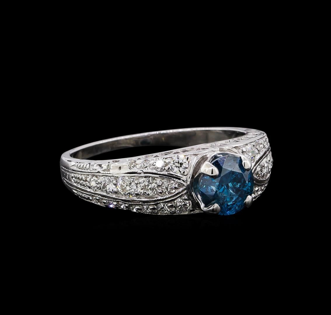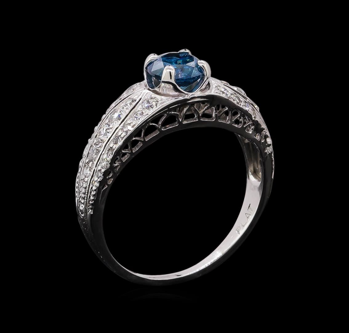 One ring : platinum weighing 3.9gm containing one blue diamond with a total weight of 0.74ct and diamonds weighing 0.6ctw.