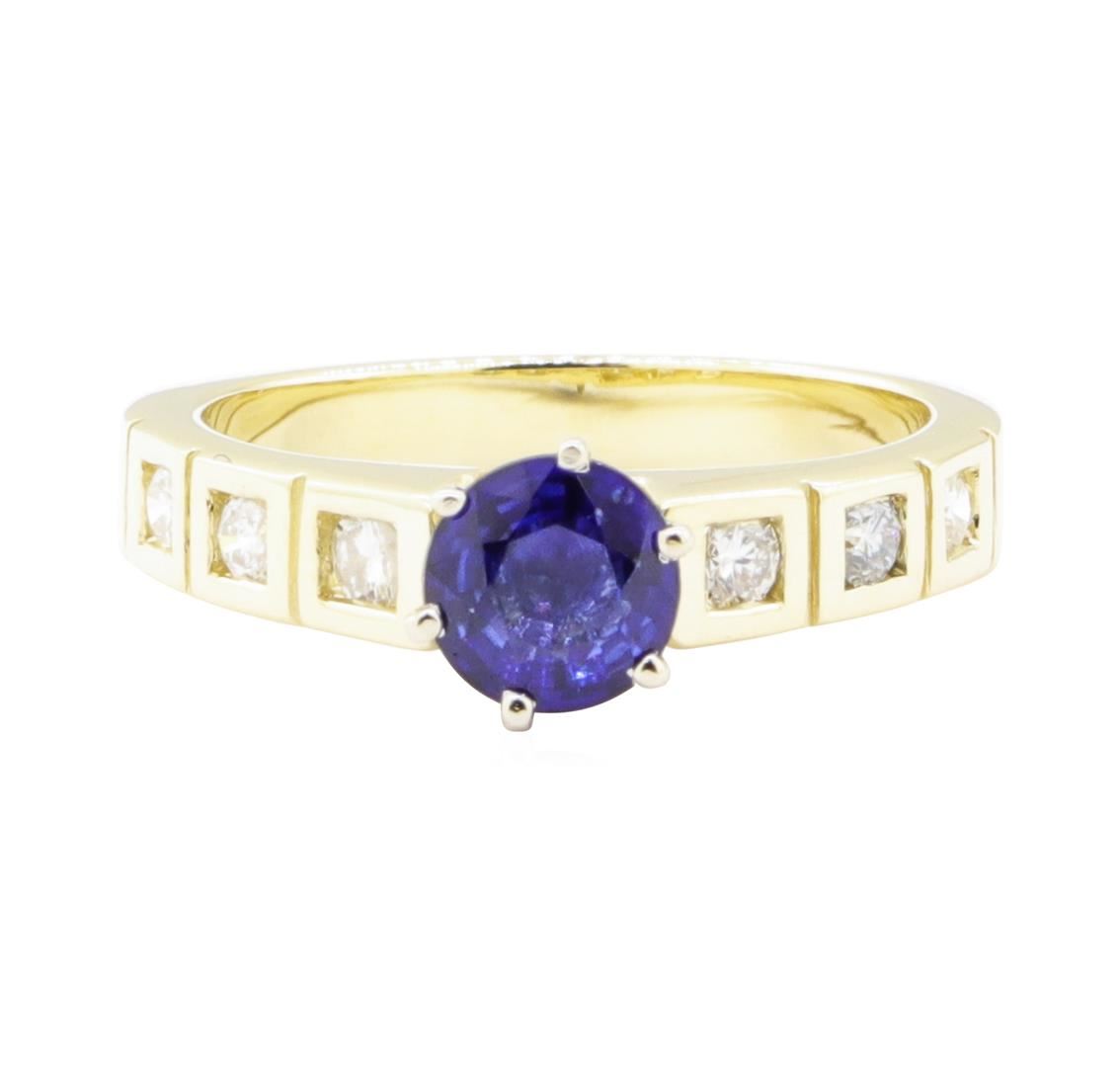 One ring featuring: 14KT yellow gold weighing 4.6 grams containing one sapphire weighing 0.84ct and diamonds weighing 0.50ctw.