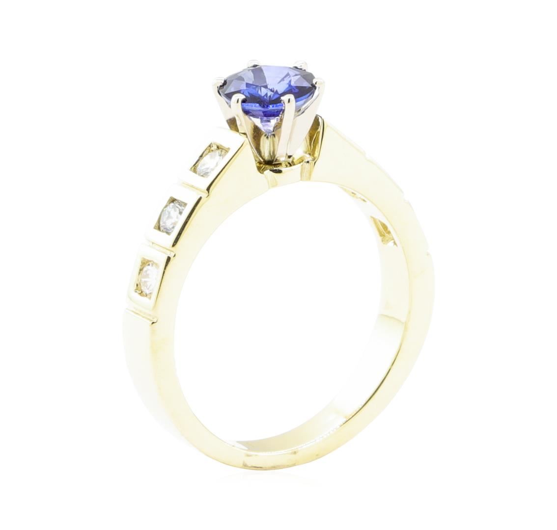 One ring featuring: 14KT yellow gold weighing 4.6 grams containing one sapphire weighing 0.84ct and diamonds weighing 0.50ctw.