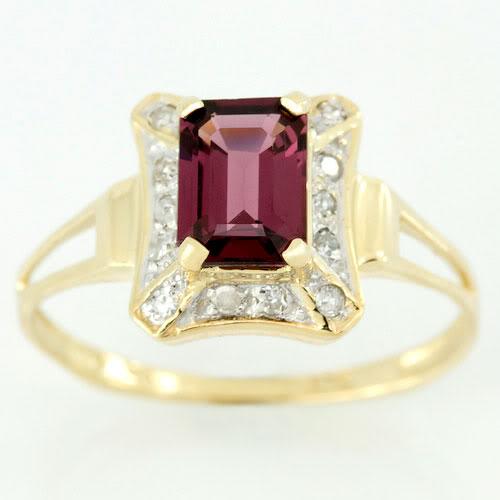 1.34Ct Rhodolite & 14 Genuine Diamond 9K Gold Ring (JEW-9046X)