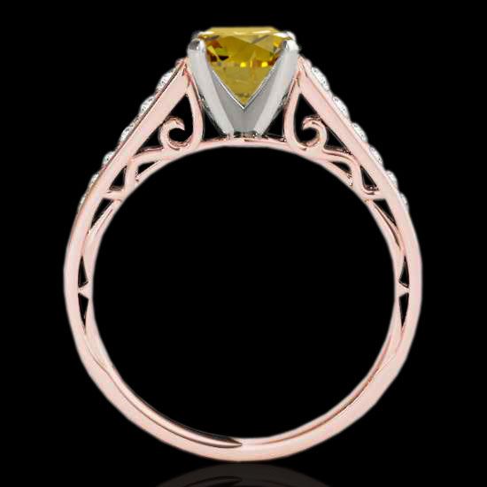 REF-156T4M -34915 ---- 1.35 CTW Certified Si/I Fancy Intense Yellow Diamond Solitaire Ring 10K Rose Gold ---- Luxury Designer Brand Ring Appraised at $10,300 Certificate Number US34915 10k Rose gold, Ring Size is 7, Ring measuring approx. Uniform, weighing in total approx. 4.4 grams. Made in the USA and is stamped 10k, Main stone 1 carat total weight containing 1 pieces of Intense Fancy Yellow color with SI quality Round shape cut Diamond , Stone #2 0.35 carat total weight containing 12 pieces of H-I color with VS/SI quality Round shape cut Diamond