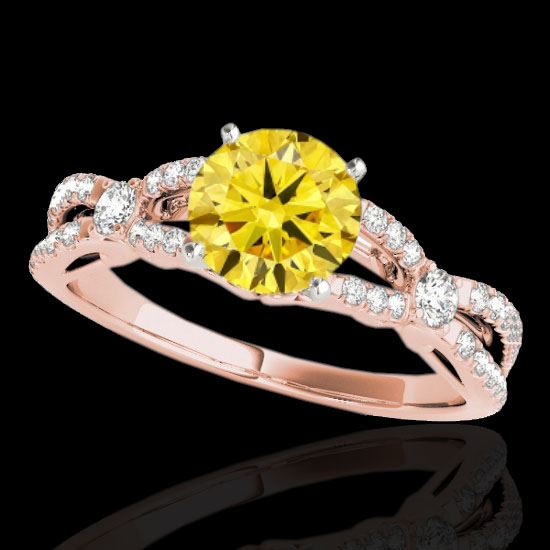 REF-167Y3K -35231 ---- 1.35 CTW Certified Si/I Fancy Intense Yellow Diamond Solitaire Ring 10K Rose Gold ---- Luxury Designer Brand Ring Appraised at $11,050 Certificate Number US35231  10k Rose gold,  Ring Size is 7, Ring measuring approx. Uniform, weighing in total approx. 4.5 grams. Made in the USA and is stamped 10k, Main stone 1 carat total weight containing 1 pieces of Intense Fancy Yellow color with SI  quality Round shape cut Diamond , Stone #2 0.35 carat total weight containing 38 pieces of H-I color with  VS/SI quality Round shape cut Diamond