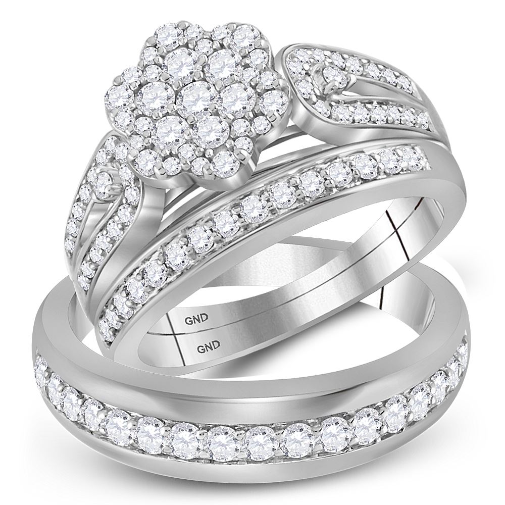 REF-86M2H- SKU: GD112577 ---- 1.35 CTW His & Hers Diamond Cluster Matching Bridal Ring 10KT White Gold