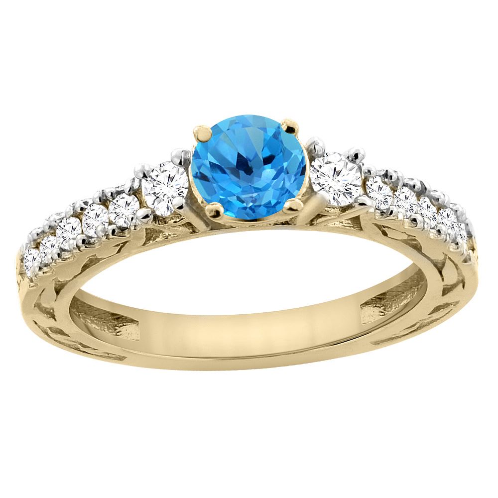 REF-79M5K - SKU: SC-CY404288 ---- 1.35 CTW Swiss Blue Topaz & Diamond Ring 14K Yellow Gold