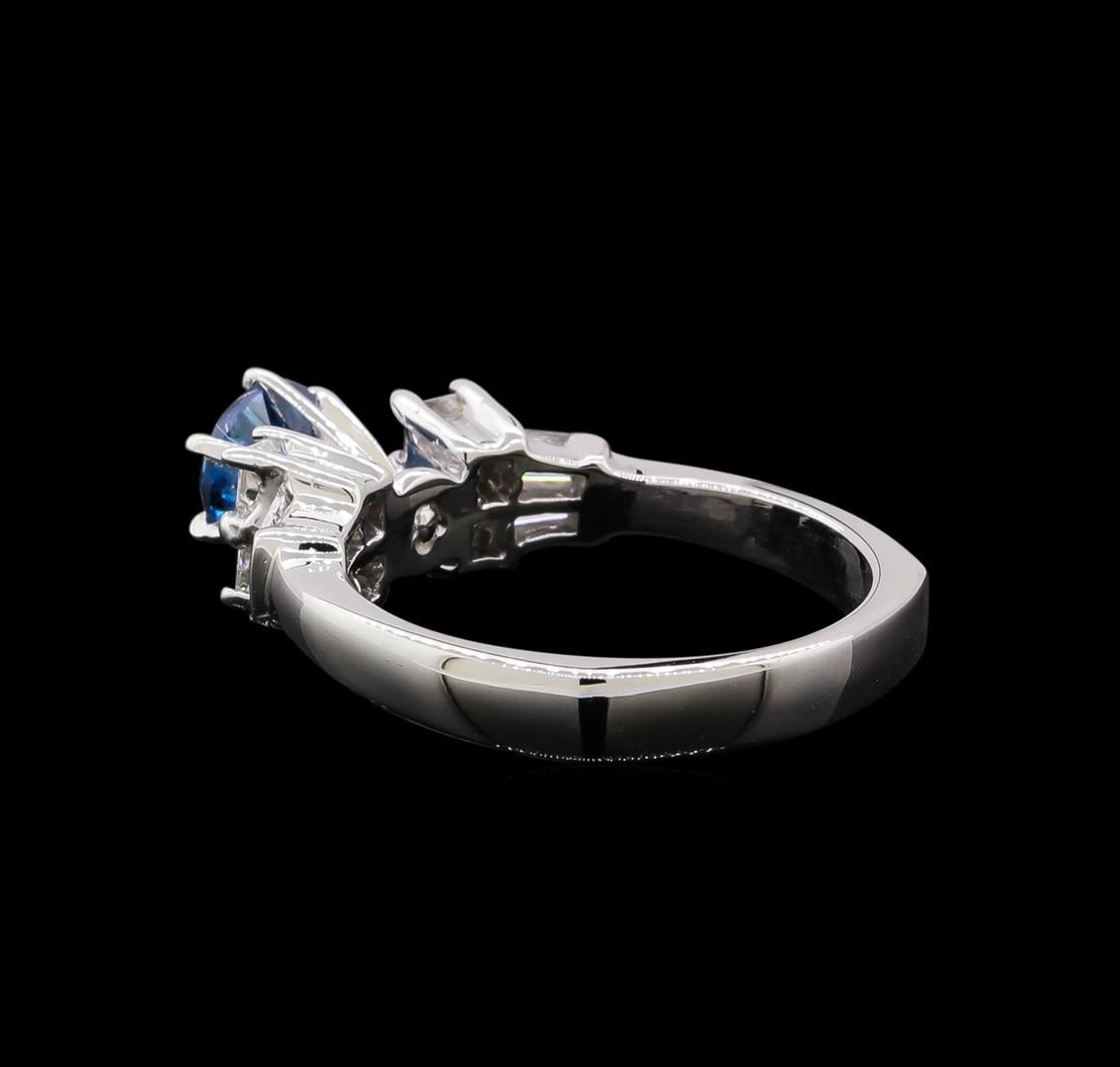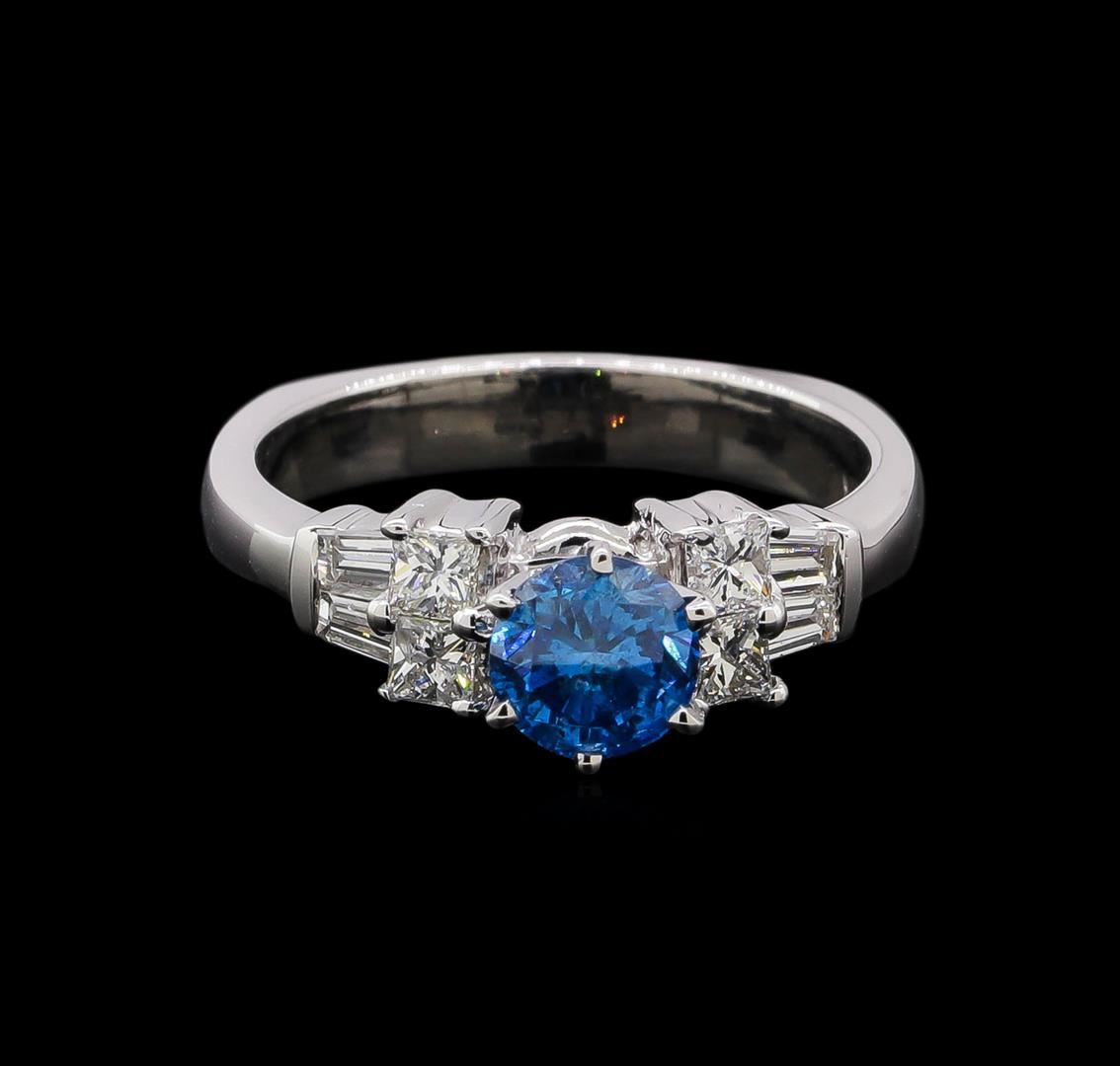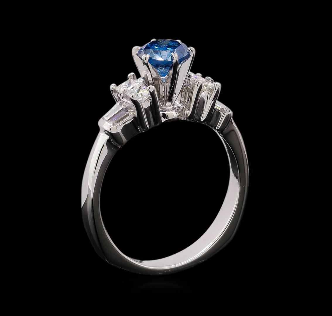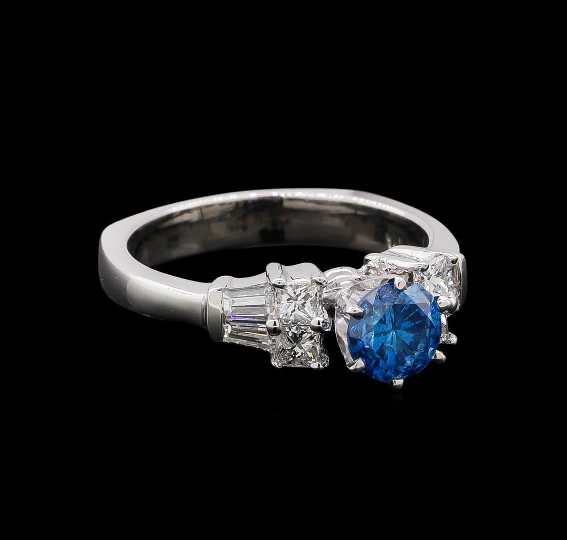 One ring : 14KT white gold weighing 4.6gm containing one blue diamond with a total weight of 0.77ct and diamonds weighing 0.58ctw.