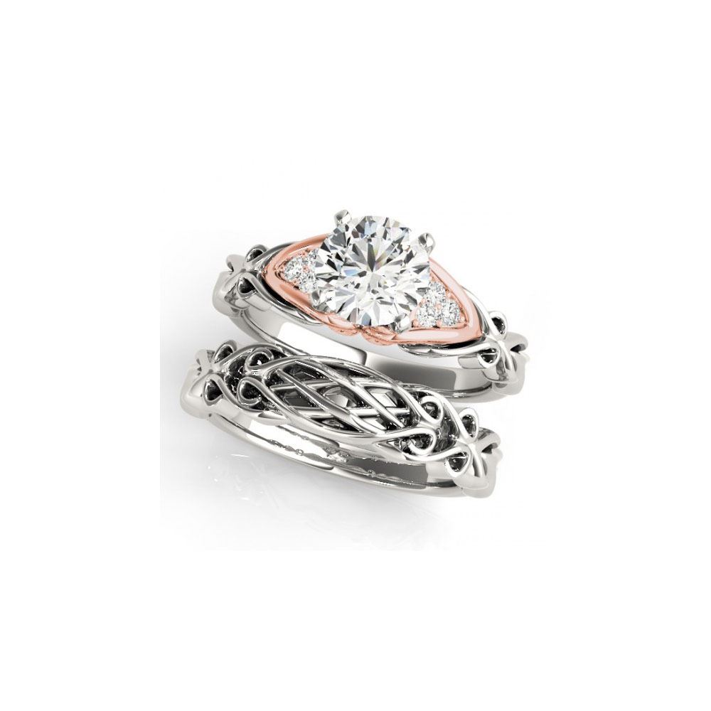 1.35 ctw Certified VS/SI Diamond Solitaire 2pc Set Ring 14K White & Rose Gold
