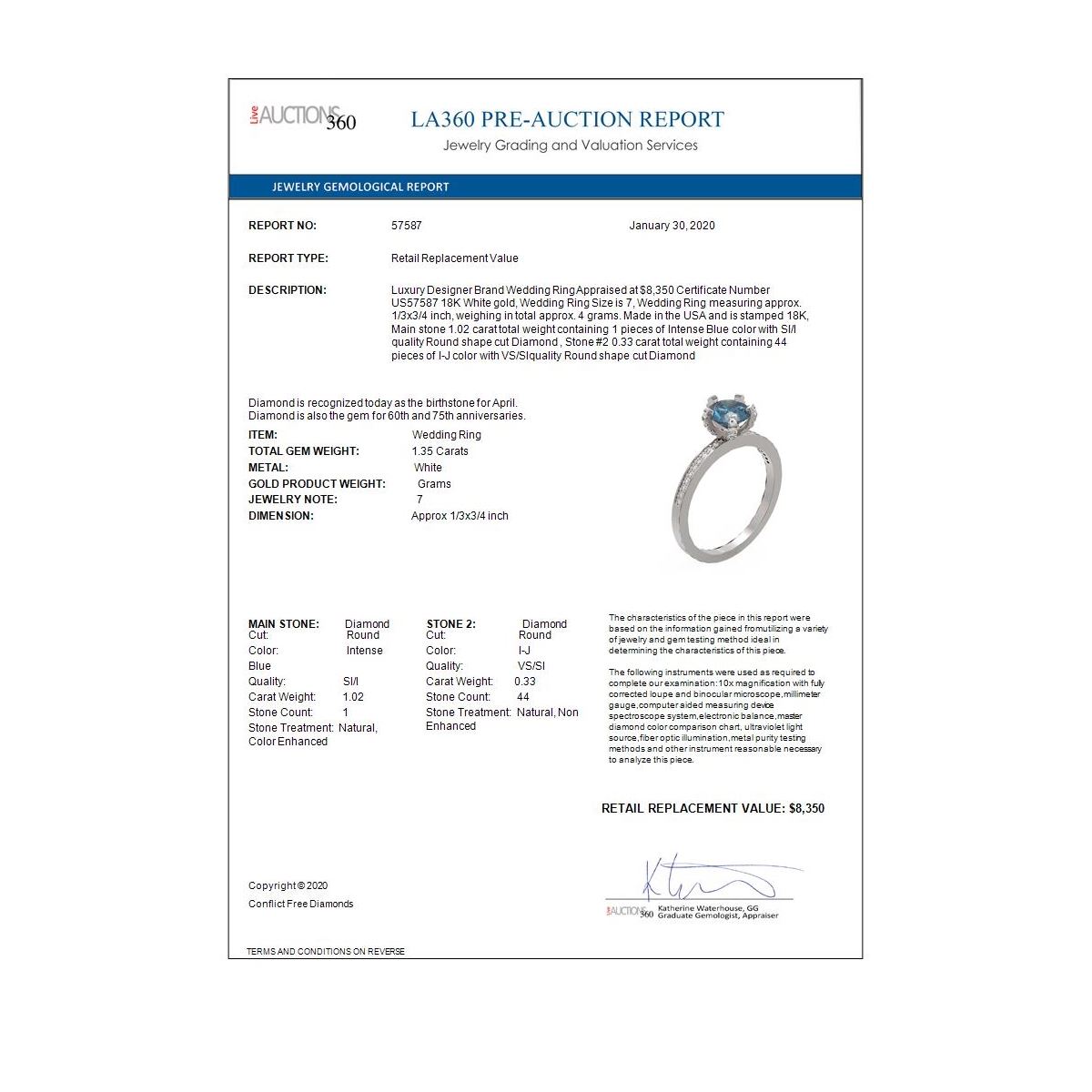 REF-201X8A - SKU: 57587 ---- 1.35 ctw Intense Blue Diamond Ring 18K White Gold