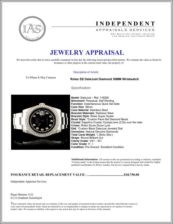 Dial: *Custom Black DateJust Jeweled Dial
