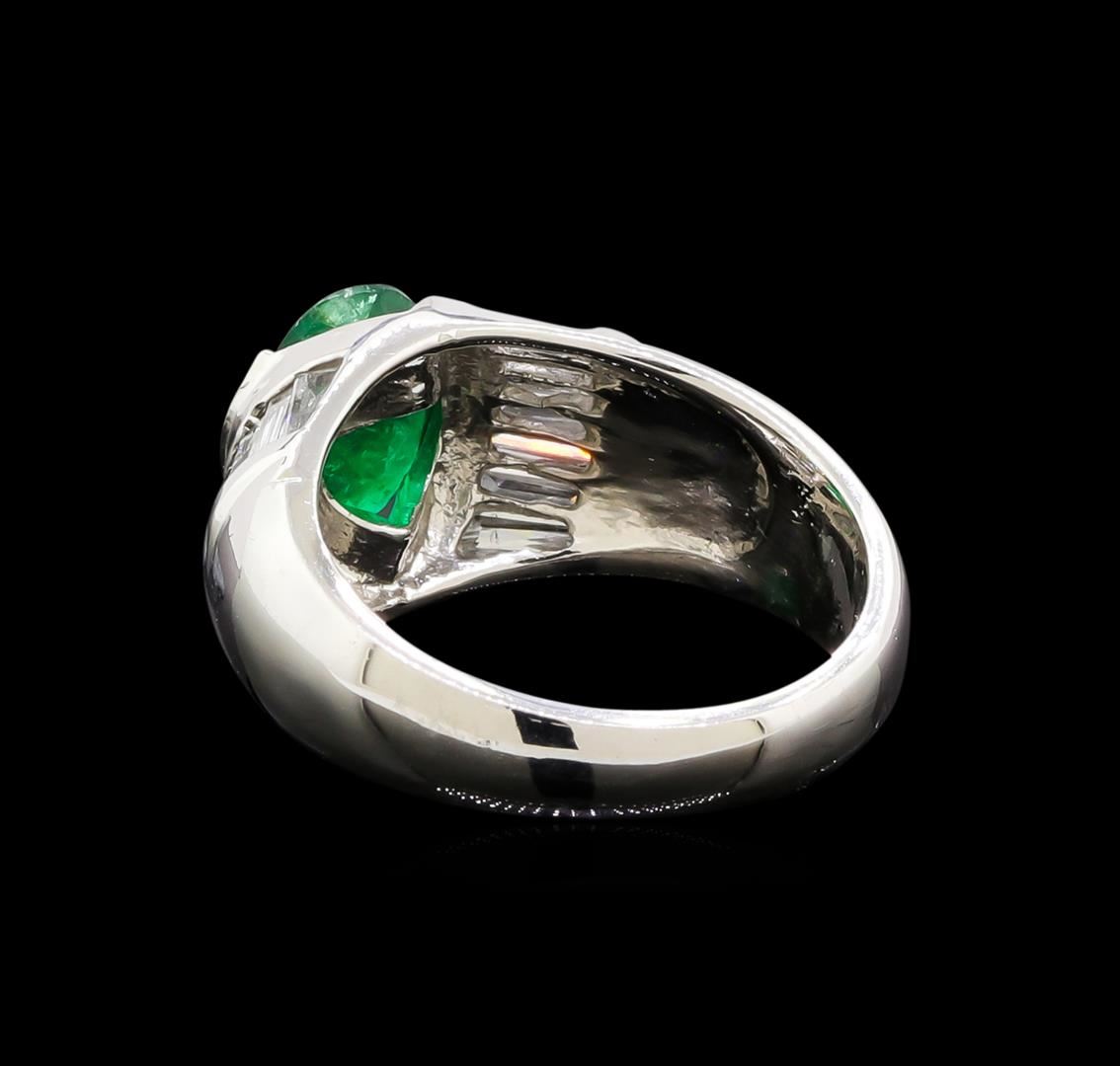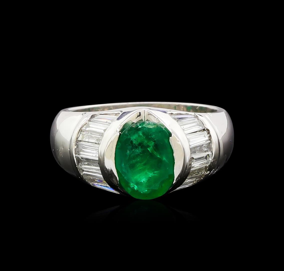 One ring featuring: Platinum weighing 11.59 grams containing one emerald with a total weight of 1.35ct and side diamonds with a total weight of 0.70ct.