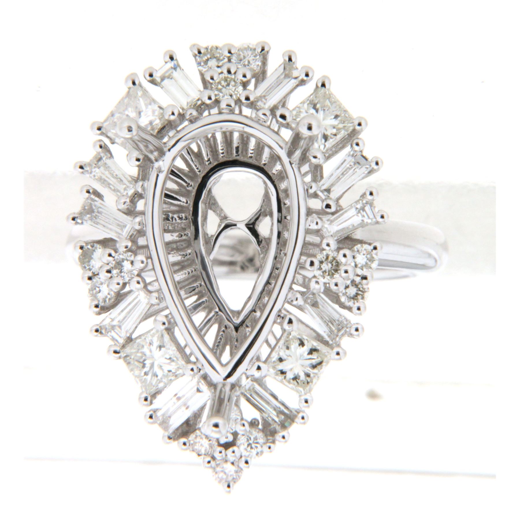 REF-161F6N - JF415483 ---- 1.36 CTW Princess Diamond & Baguette Semi Mount Ring 14K White Gold