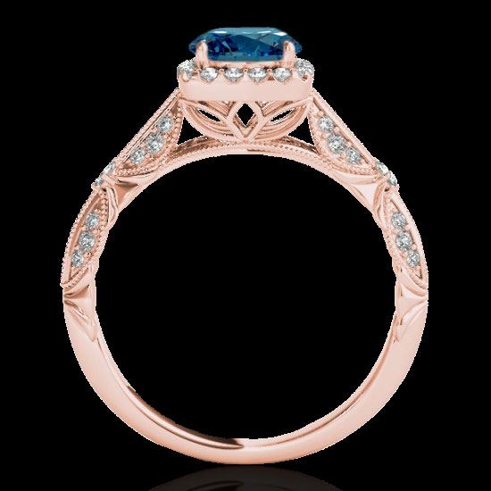 33757 - REF-161M8F ---- 1.36 CTW SI Certified Fancy Blue Diamond Solitaire Halo Ring 10K Rose Gold ---- Luxury Designer Brand Ring Appraised at $9,800 Certificate Number US33757 10k Rose gold, Ring Size is 7, Ring measuring approx. Uniform, weighing in total approx. 3.5 grams. Made in the USA and is stamped 10k, Main stone 1 carat total weight containing 1 pieces of Intense Fancy Blue color with SI quality Round shape cut Diamond , Stone #2 0.36 carat total weight containing 46 pieces of H-I color with VS/SI quality Round shape cut Diamond