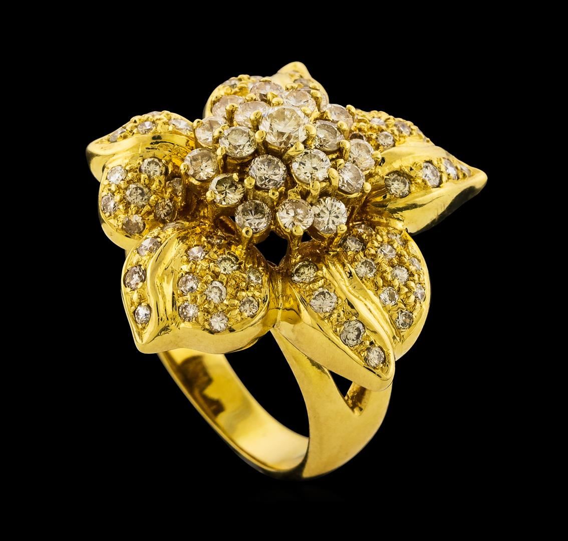One ring featuring: 18KT Yellow Gold containing Diamonds with a total weight of 1.36ct. Total Weight of Ring: 10.6 grams.