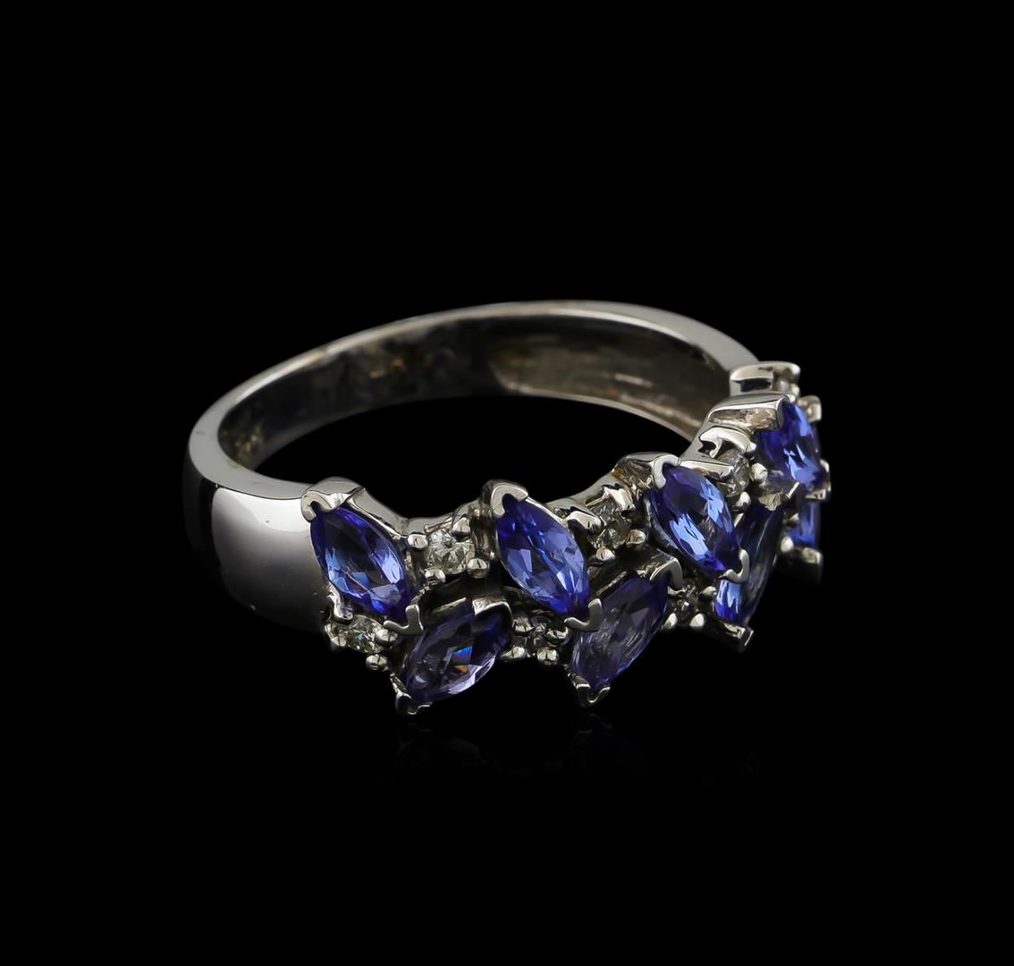 One ring featuring: 14KT white gold weighing 4.40 grams containing eight tanzanites with a total weight of 1.36ct and diamonds with a total weight of 0.16ct.