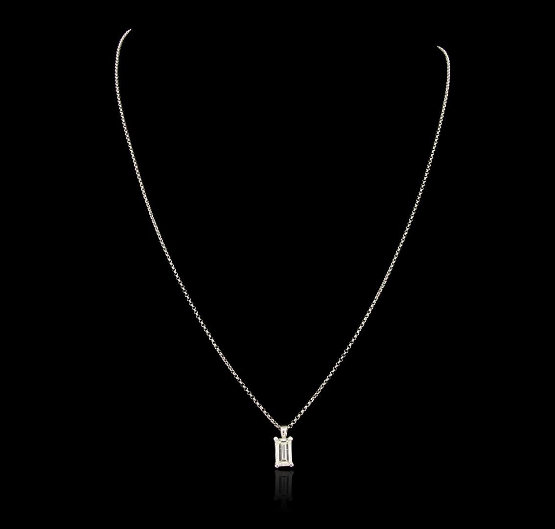 Platinum 1.36ct Diamond Enhancer and Chain JRM373. Excellent Condition! AT7023YC. One stamped & tested platinum lady's cast prong set diamond pendant & chain 20.0" long, medium round rolo with a spring ring clasp with a bright polish finish. Trademark is a symbol. Identified with markings of "PT 950". Condition is excellent. Containing: One prong set emerald shaped cut diamond, measuring 8.19 x 4.79 x 3.47mm (depth est.) approximate weight of 1.36ct. Clarity of SI-2, Color of I, Cut is Very Good. Total Weight of Diamonds 1.36ct. Total Weight of Pendant & Chain 4.70gm. GGL Appraised at $22,495.00. GGL Appraised.