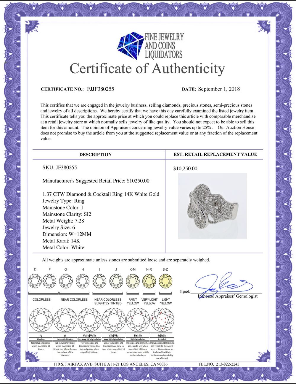 REF-135W3H - JF380255 ---- 1.37 CTW White Round Diamond Ring 14K White Gold
