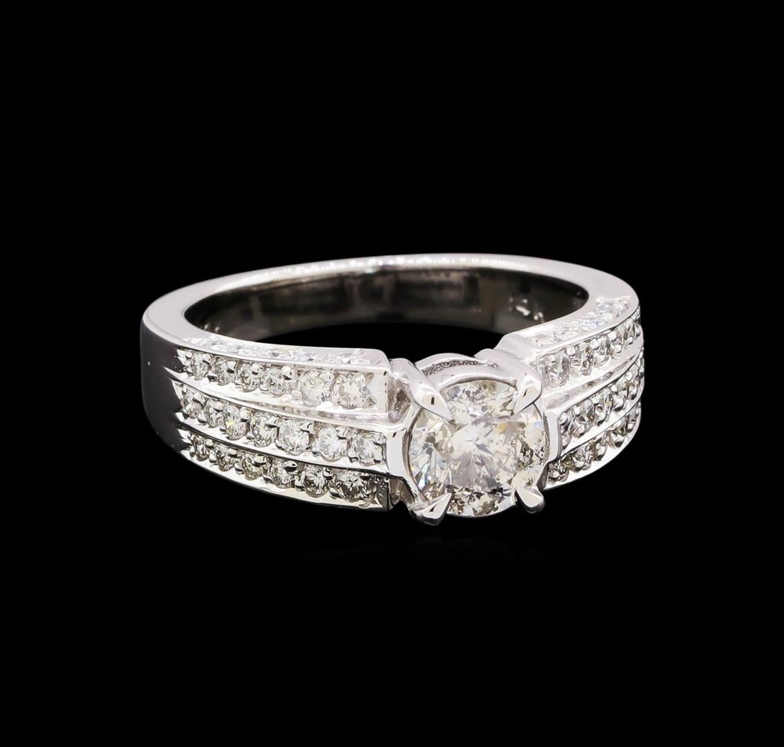 One electronically tested 14KT white gold lady's cast 3 row straight line wedding ring with a bright polish finish. The featured lady's ring has a shank measuring 2.95 millimeters in width. Identified with markings of "14K". Condition is new, good workmanship. Containing: One prong set round brilliant cut diamond, measuring 5.82 - 5.79 x 3.75mm (depth est.) approximate weight of 0.80ct. Graded in the setting. Clarity: I-1. Color: I - Very Good Fifty-Eight prong set round brilliant cut diamonds, measuring 1.40 - 1.30 x 0.85mm (depth est.) approximate total weight of 58 Stones = 0.57ct. Graded in the setting. Clarity: VS-1 to VS-2. Color: F - Very Good. Total Weight of Diamonds 1.37ct. Total Weight of Ring 6.00gm. GAS Appraised at $7,150.00.