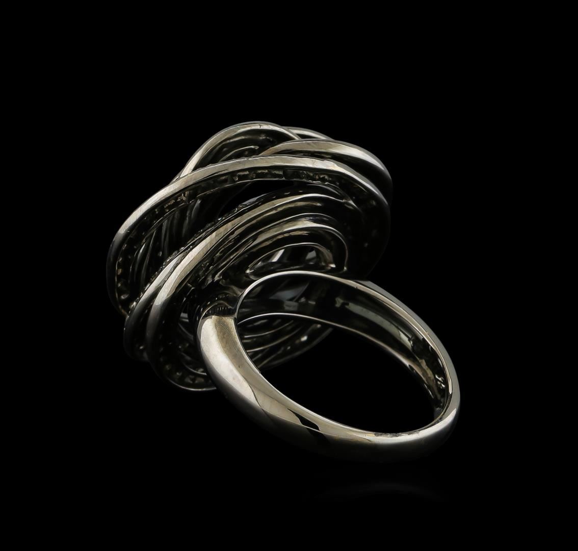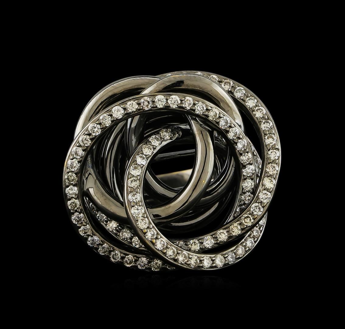 One electronically tested 18KT white & black rhodium plated gold lady's combination cast & assembled fashion ring with a bright polish finish. The featured lady's ring has a shank measuring 2.95 millimeters wide. Identified with markings of "18K". Condition is new, good workmanship. Containing: One Hundred Fifteen prong set round brilliant cut diamonds, measuring 1.50 - 1.40 x 0.90mm (depth est.) approximate total weight of 115 Stones = 1.37ct. Graded in the setting. Clarity: SI-1 to SI-2. Color: H - I. Cut Very Good. Total Weight of Diamonds 1.37ct. Total Weight of Ring 14.90gm GAS Appraised at $7,260.00.