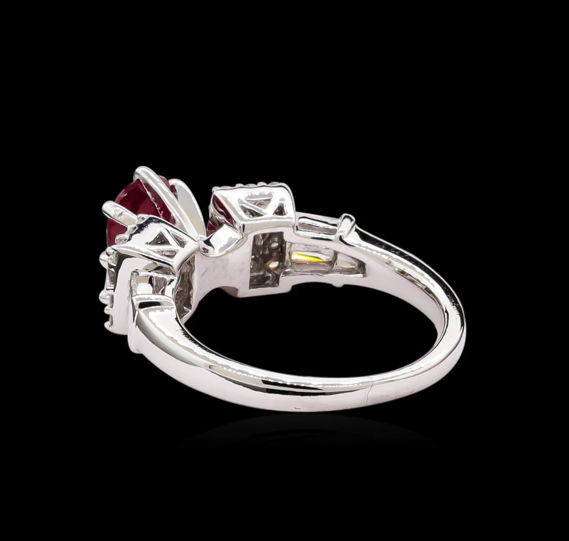 One ring featuring: 18KT white gold weighing 6.30 grams containing one ruby with a total weight of 1.37ct and side diamonds with a total weight of 0.81ct.