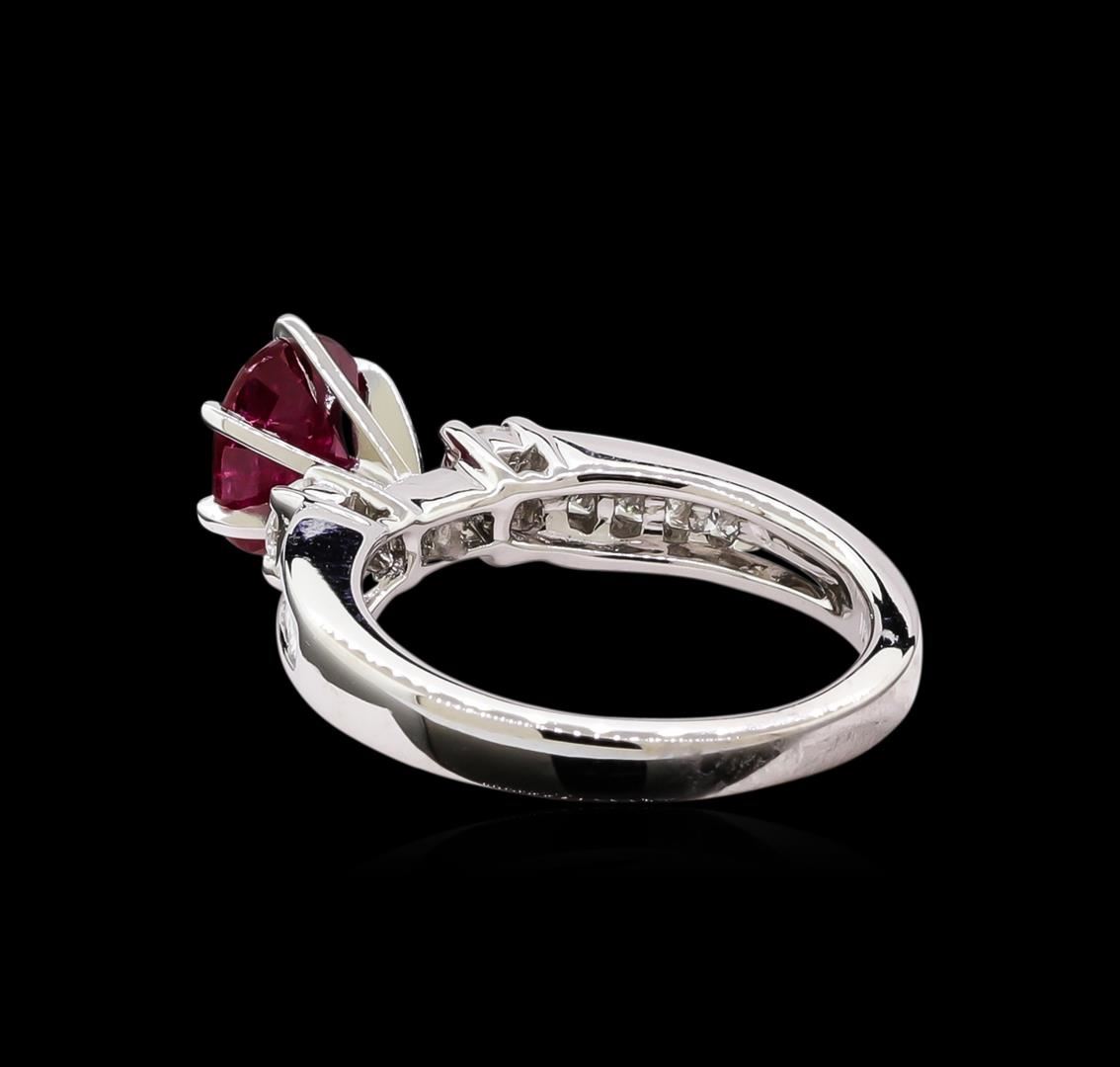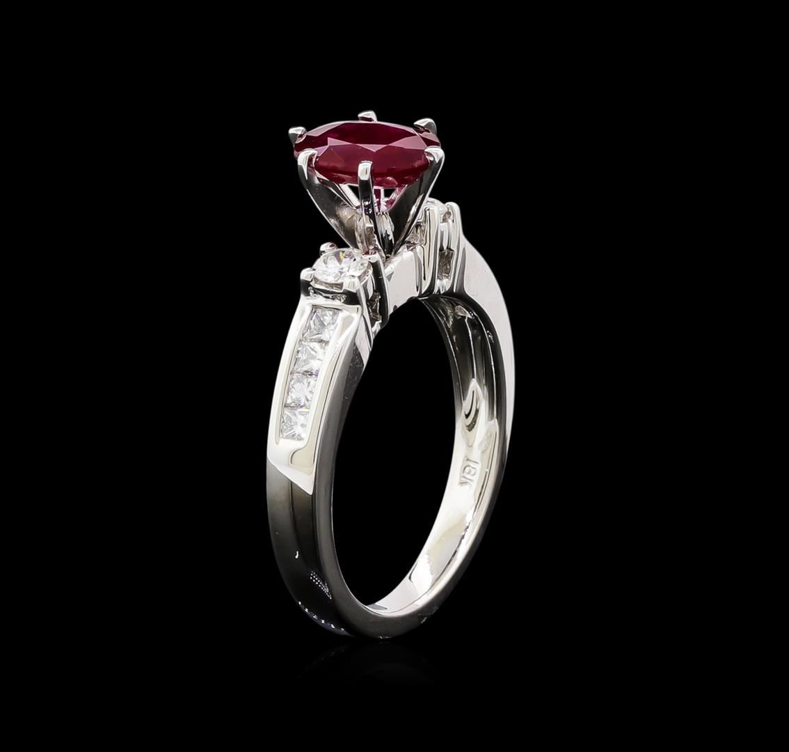 One ring featuring: 18KT white gold weighing 5.52 grams containing one ruby with a total weight of 1.37ct and side diamonds with a total weight of 0.70ct.