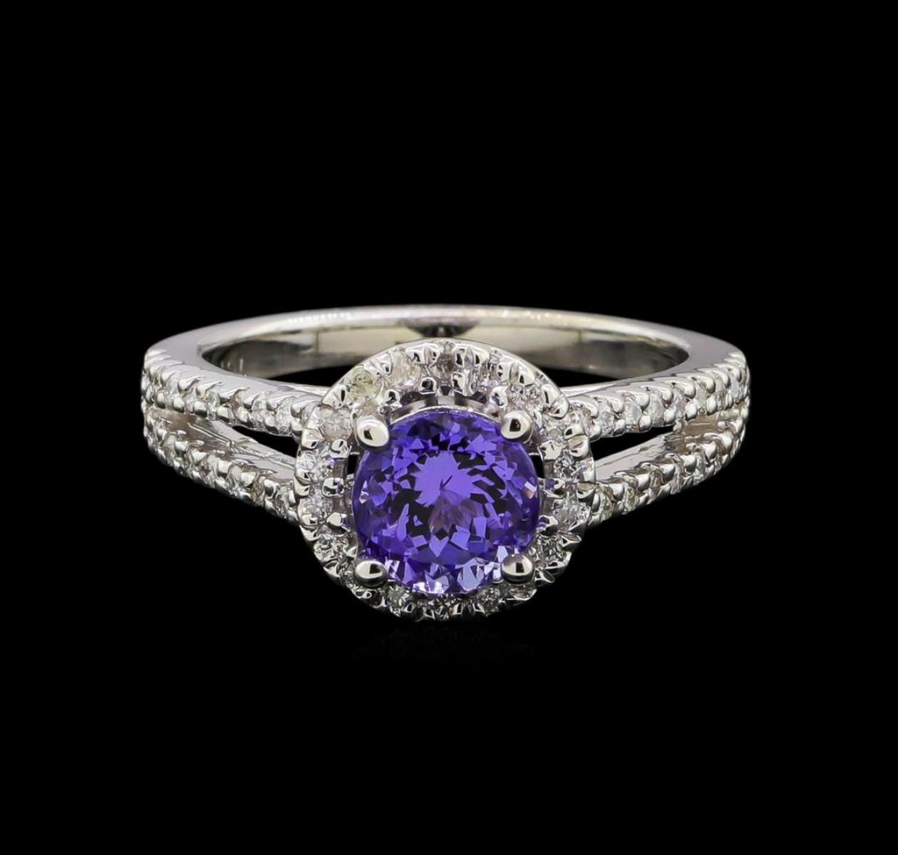 One ring featuring: 14KT white gold weighing 5.23 grams containing one tanzanite with a total weight of 1.37ct and diamonds with a total weight of 0.35ctw.