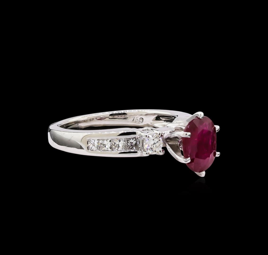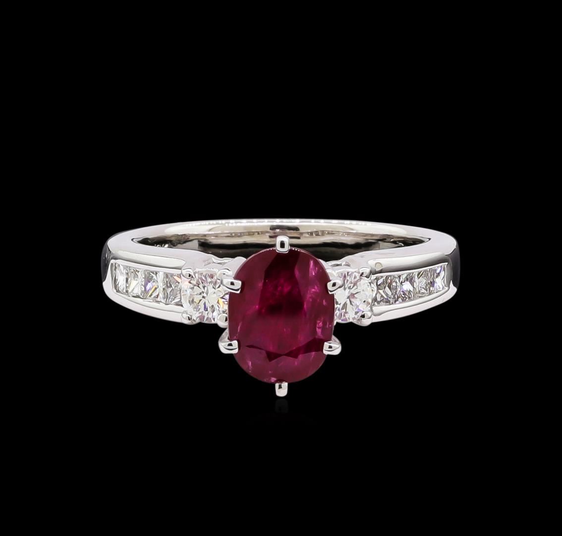 One ring featuring: 18KT white gold weighing 5.52 grams containing one ruby with a total weight of 1.37ct and side diamonds with a total weight of 0.70ct.