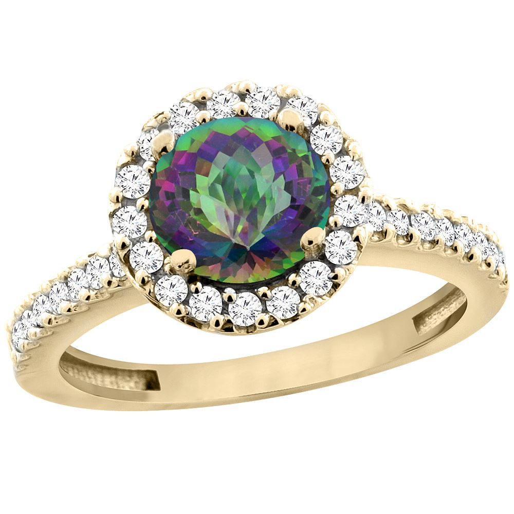 REF-54M4K - SKU: SC-CY908278 ---- 1.38 CTW Mystic Topaz & Diamond Ring 10K Yellow Gold