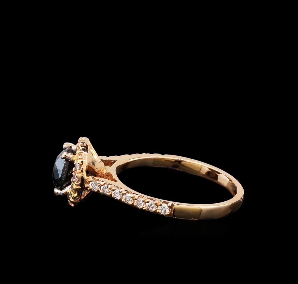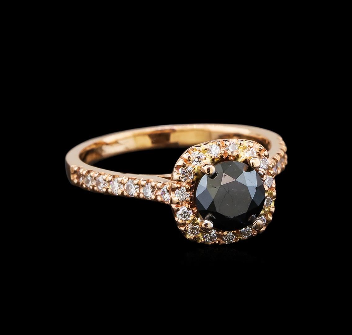 One electronically tested 14KT rose gold lady's cast fashion ring with a cathedral halo with a bright polish finish. The featured lady's ring has a shank measuring 1.93 millimeters wide. Identified with markings of '14K'. Condition is new, good workmanship. Containing: One prong set round brilliant cut diamond, measuring 6.14 - 6.11 x 4.20mm (depth est.) , 10.00.%. GTCF approximate weight of 1.08ct. Colored gemstones are presumed to have been subjected to commonly used enhancement processes. Graded in the setting. Cut Good Twenty-Nine prong set round brilliant cut diamonds, measuring 1.50 - 1.35 x 0.86mm (depth est.) approximate total weight of 29 Stones = 0.30ct. Graded in the setting. Clarity VS-1 to VS-2. Color: G - H Cut Very Good. Total Weight of Diamonds 1.38ct.. Total Weight of Ring 3.30gm. GAS Appraised at $3,425.00.