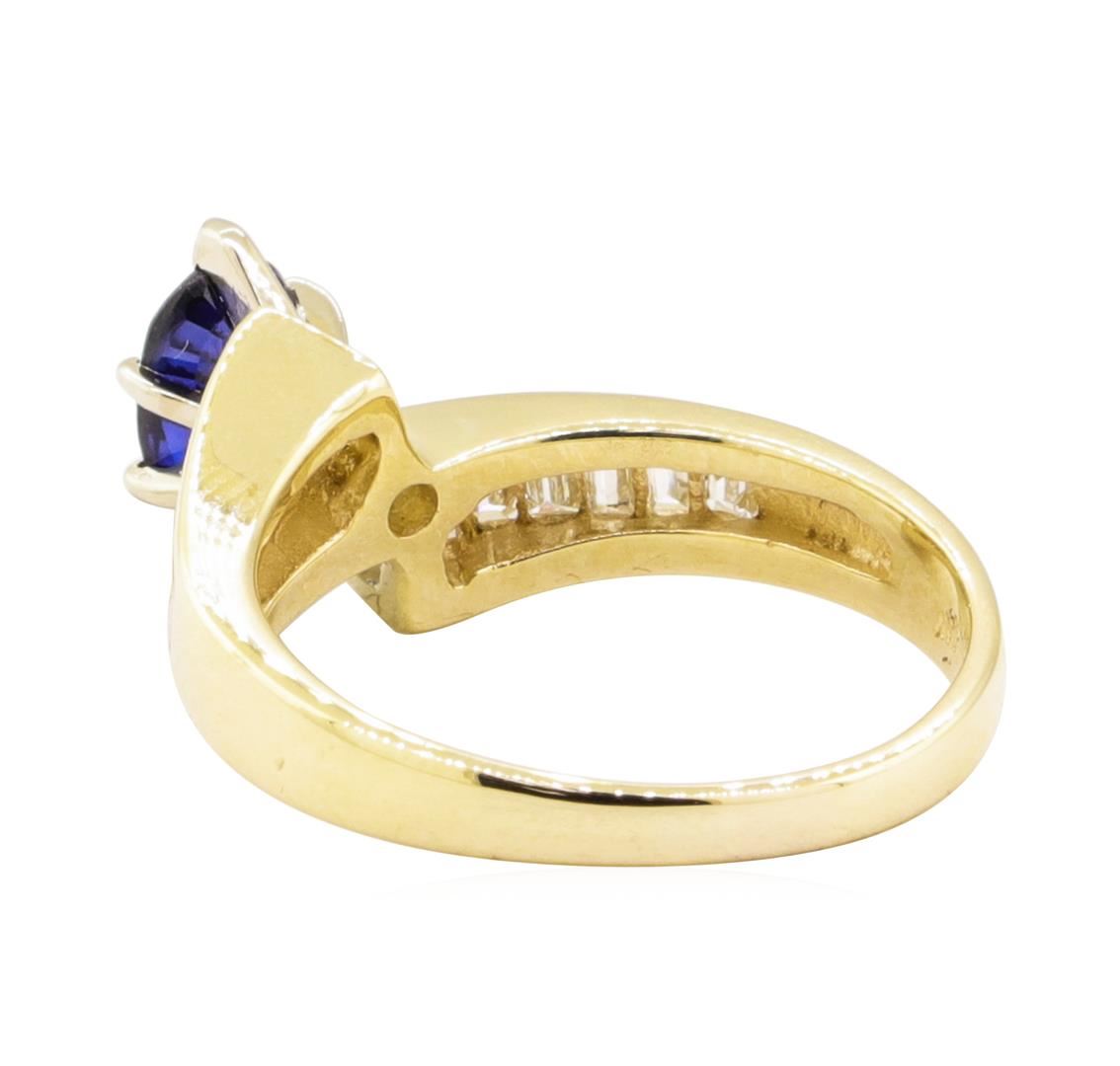 One ring featuring: 14KT yellow gold weighing 4.2 grams containing one blue sapphire weighing 0.88ct and diamonds weighing 0.50ctw.