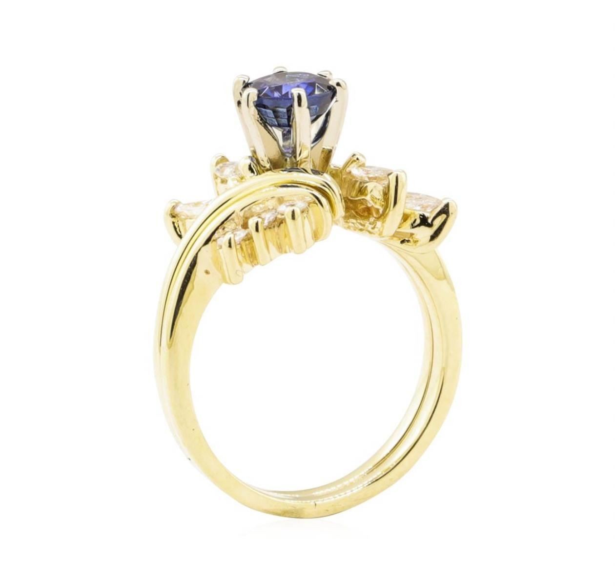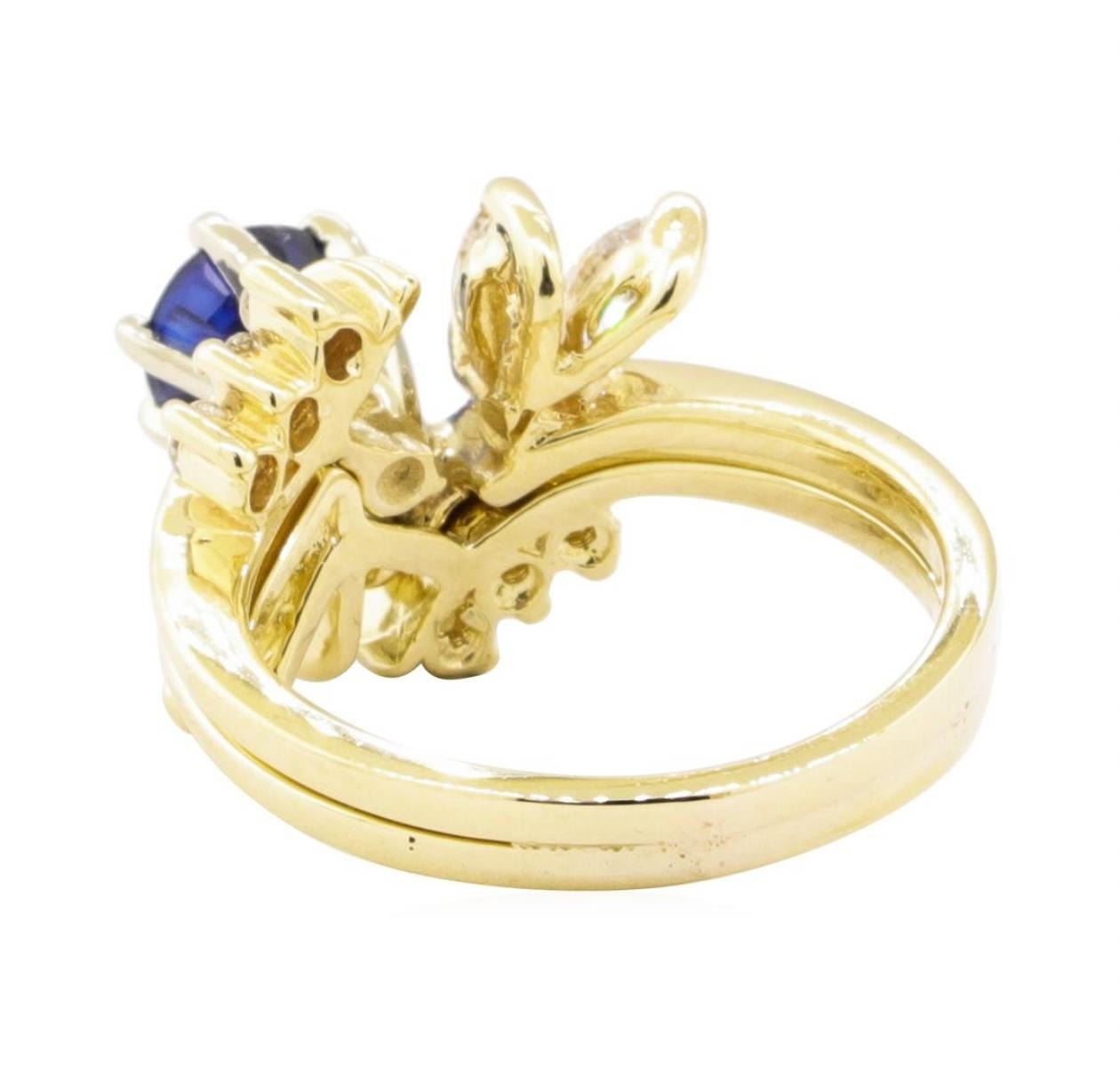 One ring featuring: 14KT yellow gold weighing 5.1 grams containing one blue sapphire weighing 0.88ct and diamonds weighing 0.50ctw.