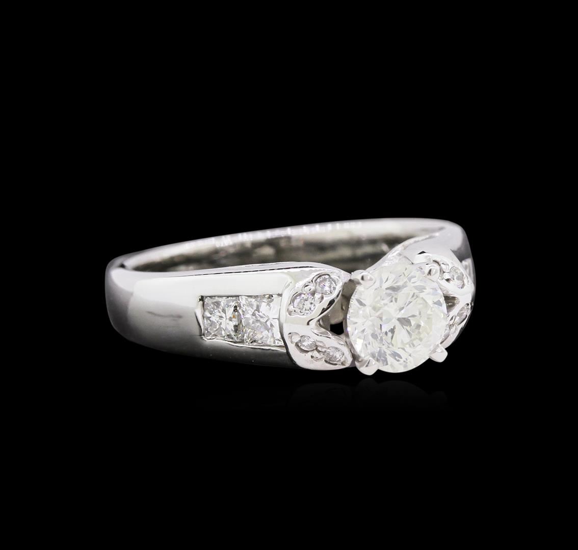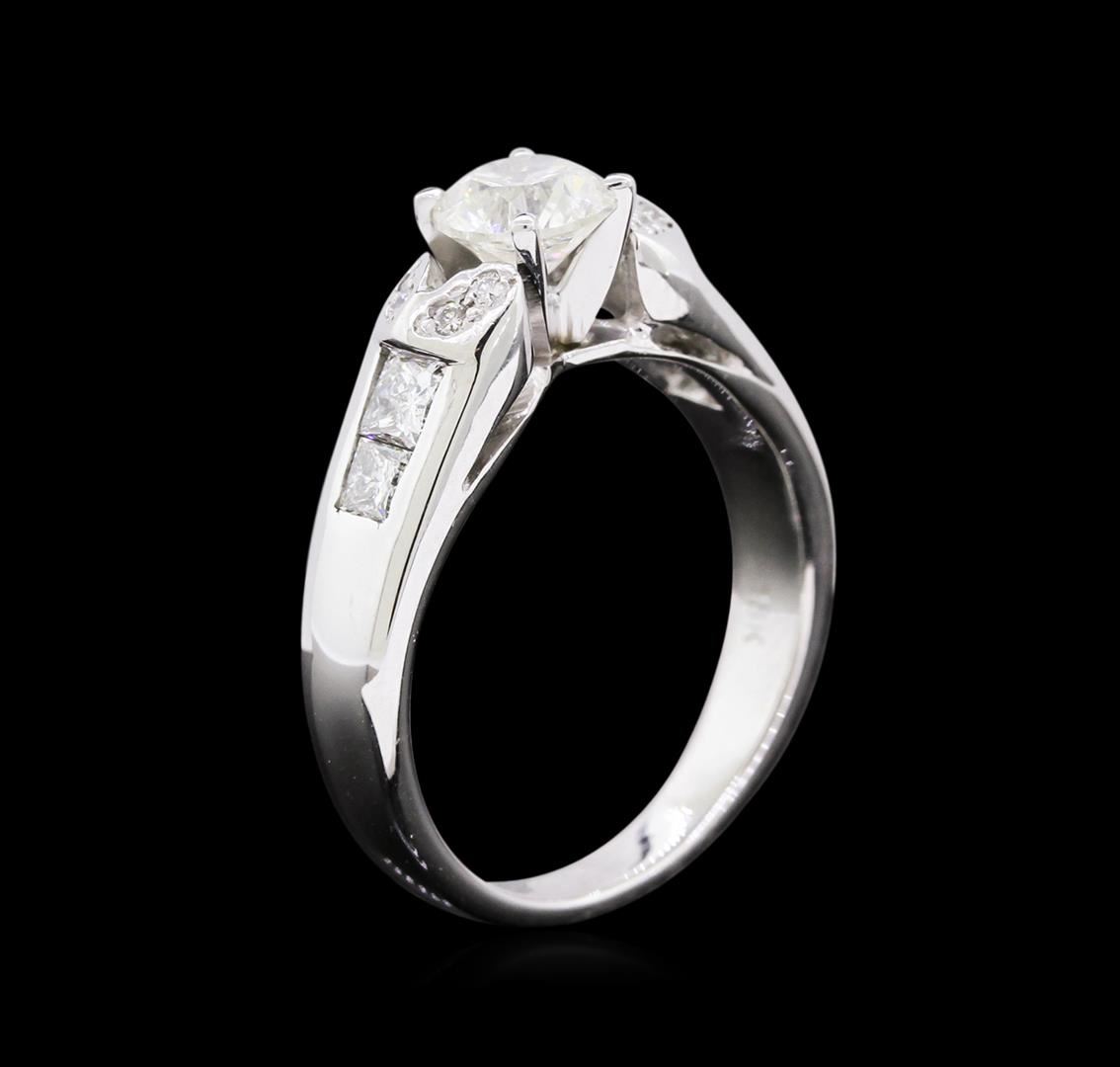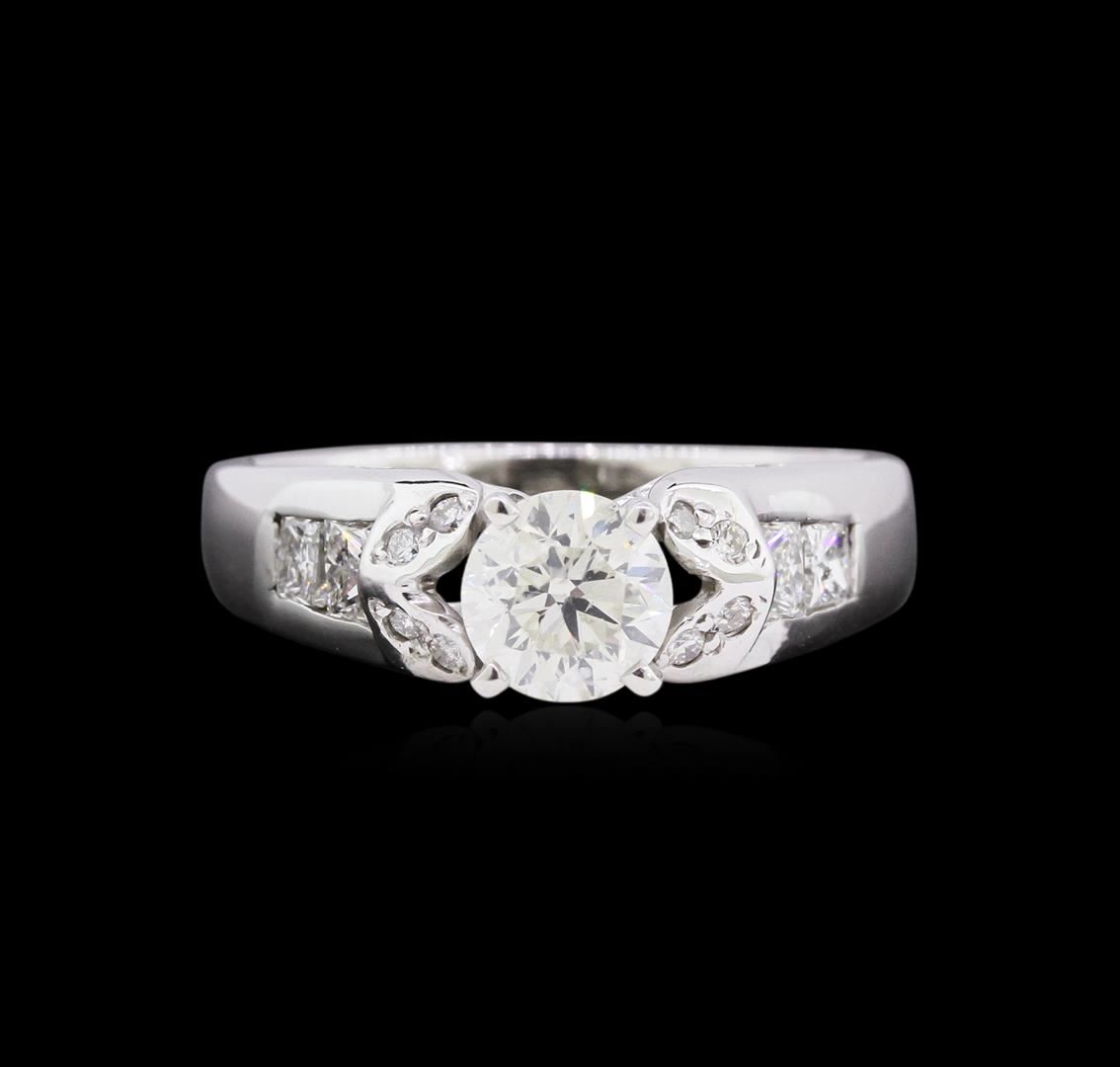 One electronically tested 18KT white gold lady's combination cast & assembled fashion ring with a cathedral shank with a bright polish finish. The featured lady's ring has a shank measuring 2.69 millimeters wide. Identified with markings of "18K". Condition is new, good workmanship. Containing: One prong set round brilliant cut diamond, measuring 5.86 - 5.84 x 3.80mm (depth est.) , 5.00% GTCF approximate weight of 0.88ct. Graded in the setting. Clarity: SI-2. Color: Very Good Four channel set princess cut diamonds, measuring 2.70 x 2.55 x 1.91mm (depth est.) approximate total weight of 4 Stones = 0.44ct. Graded in the setting. Clarity: SI-1 to SI-2. Color: H - I. Cut Good Eight prong set round brilliant cut diamonds, measuring 1.30 - 1.20 x 0.81mm (depth est.) approximate total weight of 8 Stones = 0.06ct. Graded in the setting. Clarity: SI-1 to I-1. Color: H - Good. Total Weight of Diamonds 1.38ct. Total Weight of Ring 6.30gm. GAS Appraised at $7,235.00.
