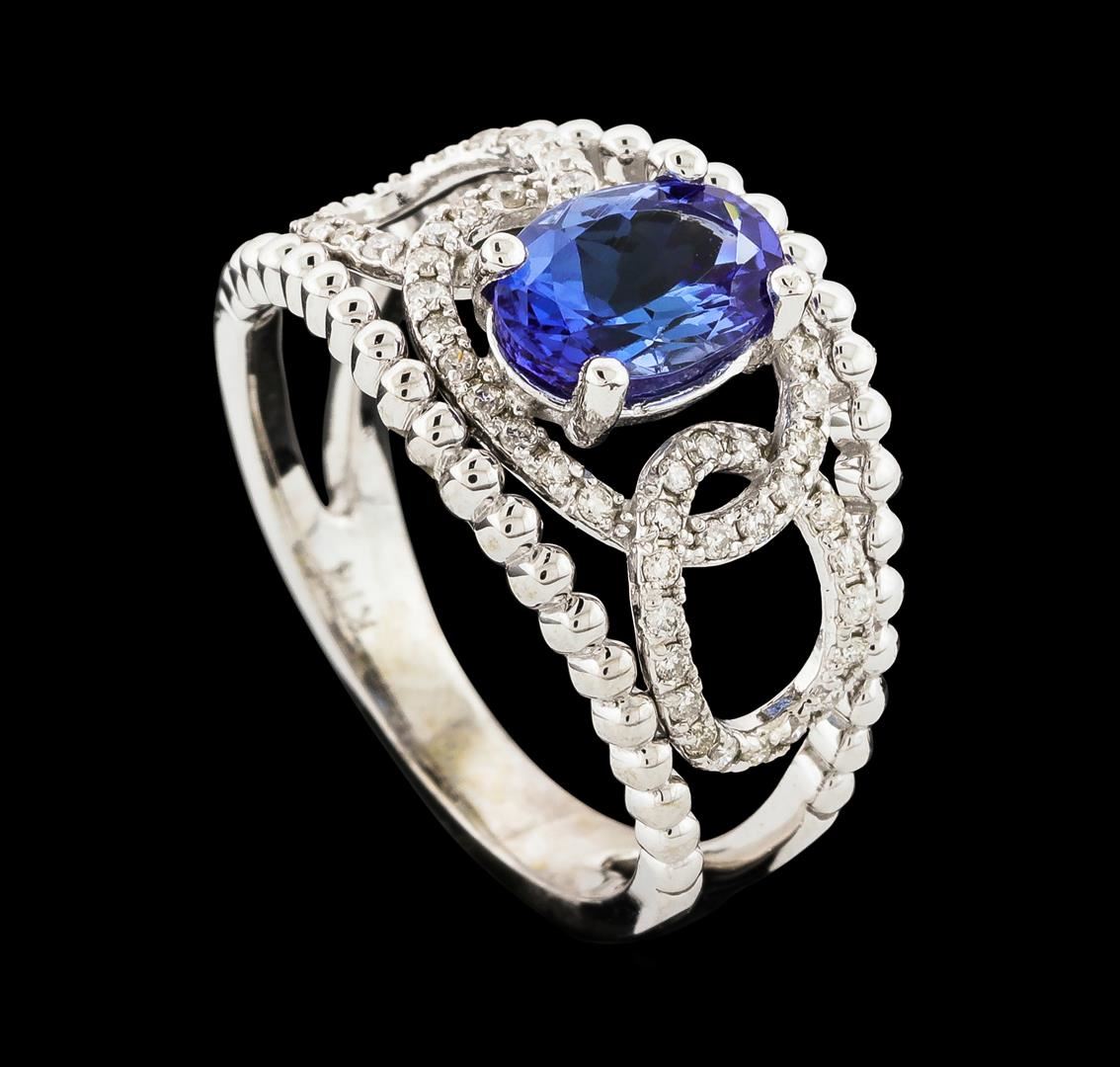 One ring : 14KT white gold weighing 3.85gm containing one tanzanite center stone with a total weight of 1.38ct and side diamonds weighing 0.35ctw.