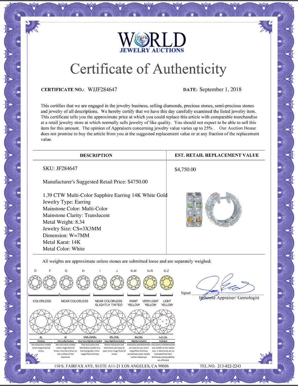 REF-62W9H - JF284647 ---- 1.39 CTW Multi-Color Sapphire & White Round Diamond Earring 14K White Gold