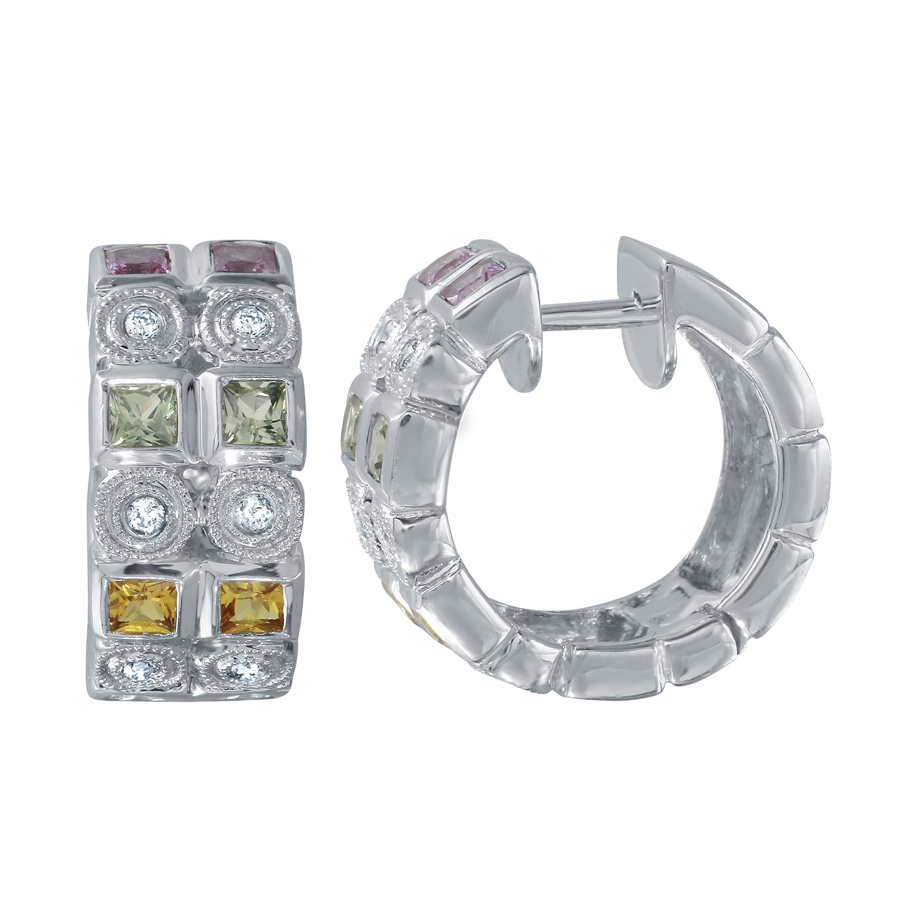REF-62W9H - JF284647 ---- 1.39 CTW Multi-Color Sapphire & White Round Diamond Earring 14K White Gold