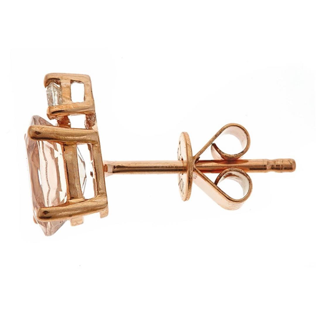 One pair of Earrings featuring: 10KT Rose Gold weighing 1.11 grams containing Morganite with an approximate weight of 1.39ct, Diamond with an approximate weight of 0.08ct, and with an approximate weight of ct.