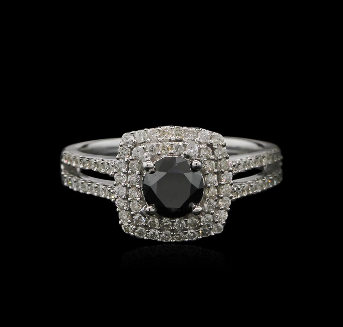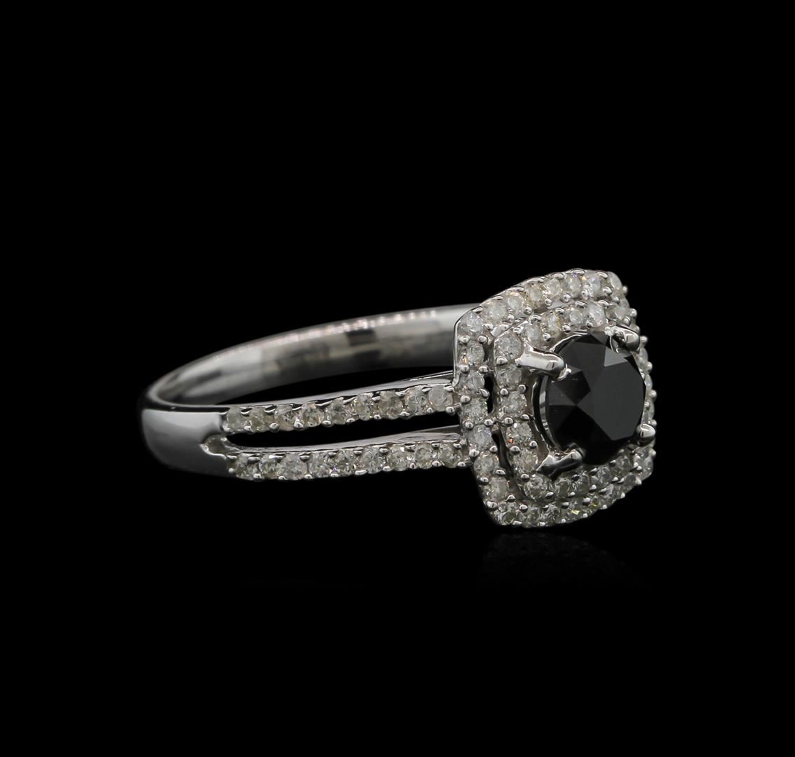 One ring featuring: 14KT white gold weighing 3.90 grams containing one prong set round black diamond center stone with a total weight of 0.82ct and prong set round white diamonds with a total weight of 0.57ct.