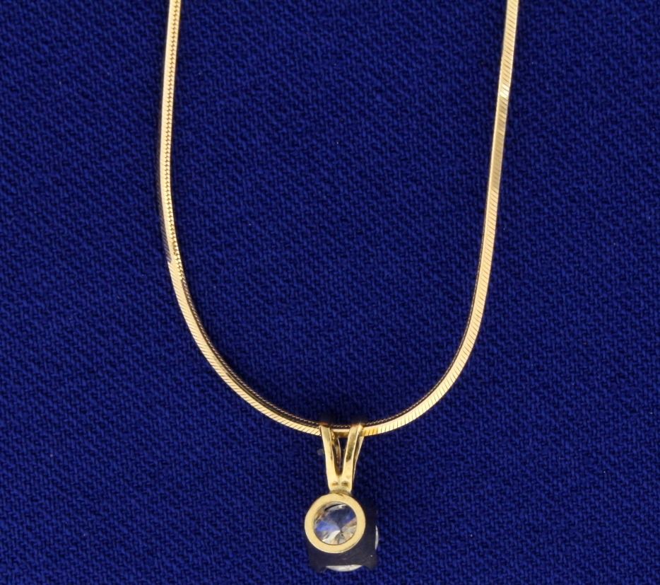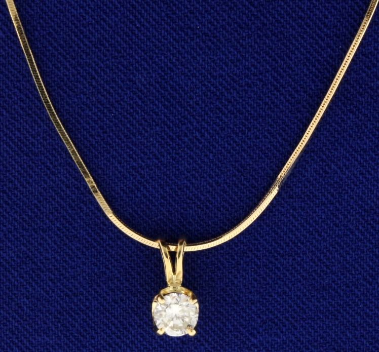 In 14k yellow gold. Contains a high quality 1/3ct round brilliant diamond, H color/SI2 clarity. 17" Italian Made Snake Chain with lobster clasp. 1/4" pendant with bale. 3.1g.