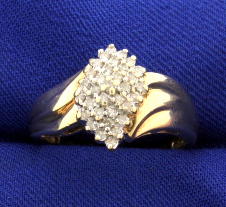 In 10k yellow gold. Containing thirty three high quality .01ct diamonds. Size 8 1/2. 2.4g.