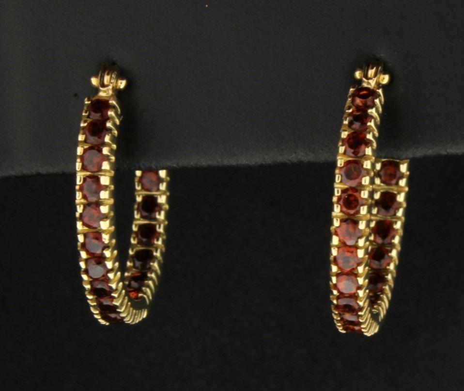 In 10K yellow gold, they are 7/8 inch long. Each earring contains twenty two 2mm round garnets with beautiful color and clarity.           3.1g